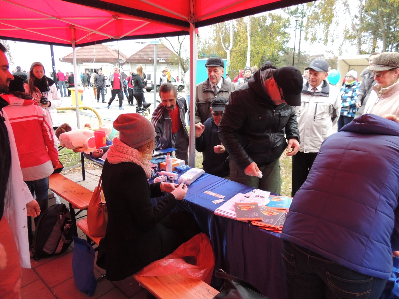 Members of the Student Scientific Clubs at the MUG Department of Oncological Surgery and the MUG Department of Anesthesiology and Intensive Care participated in the V edition of the Gdańsk Biega (Gdańsk Running) event on November 3rd 2013 by the pier in Gdańsk-Brzeźno. The students measured blood pressure, blood glucose levels, taught breast self-examination and encouraged healthy lifestyle. In addition, students demonstrated on mannequins what to do in case of choking, how to open the airways, ventilate and even how to insert a cannula into the vein.