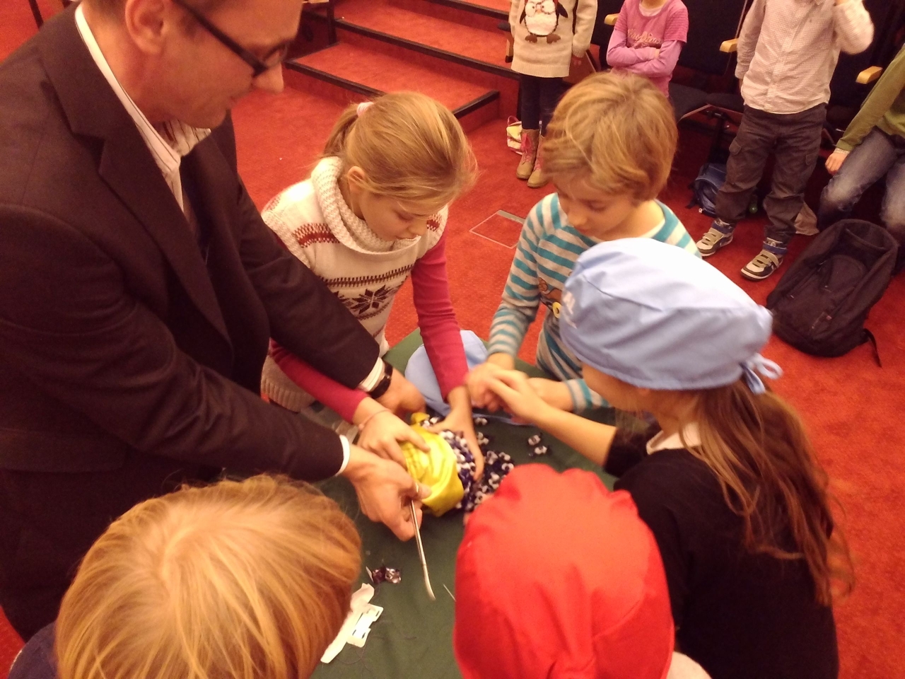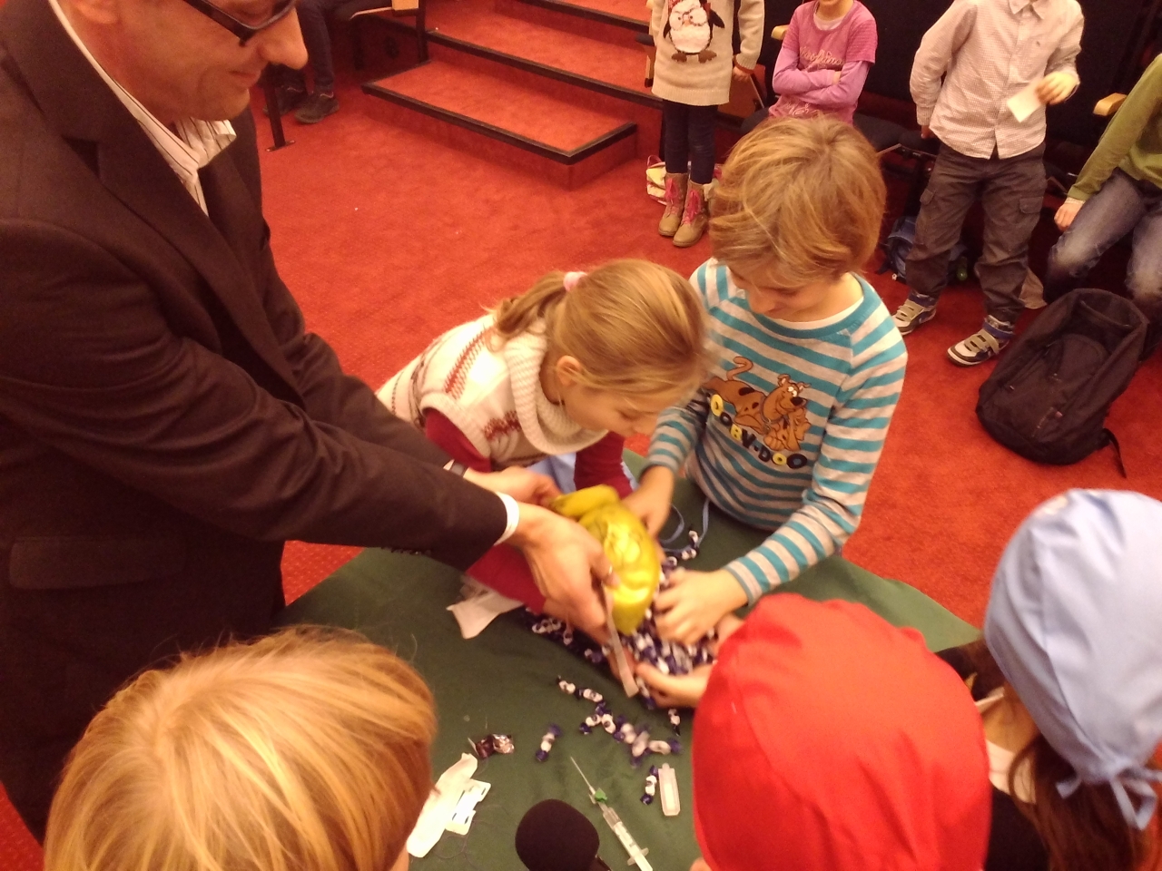 Operating on a teddy bear was the main attraction during the recent edition of GUMed Kids, a series of events for little scientists. Over 250 children participated in the the activities on November 15th 2013. The first lecture was delivered by Szymon Hofman (10 years old) who introduced the audience to one of the most advanced and free educational systems khanacademy.org and convinced the audience that mathematics are a lot of fun. Whereas dr hab. Stanisław Hać (MUG Department of General, Endocrine and Transplant Surgery) told the children about the secrets of being a surgeon and invited them to perform an operation on a teddy bear. The little surgeons did an excellent job – the operation was successful.