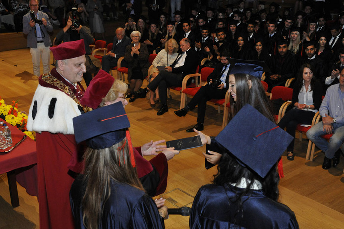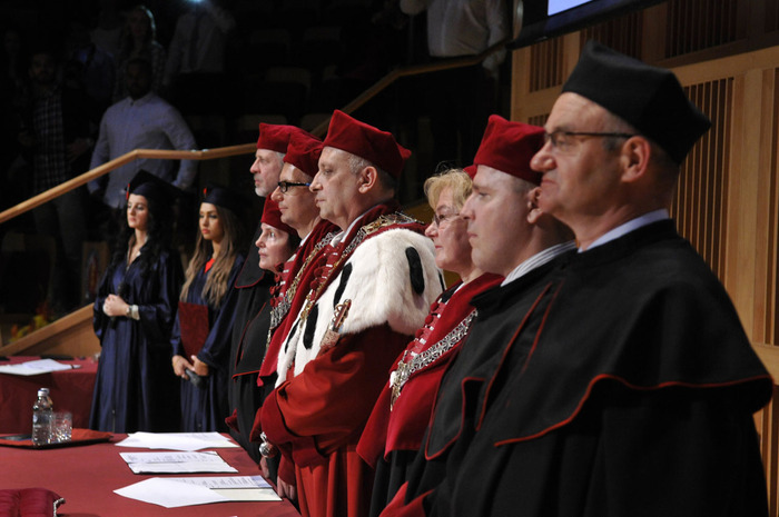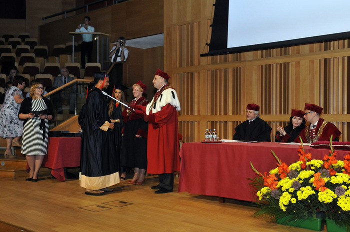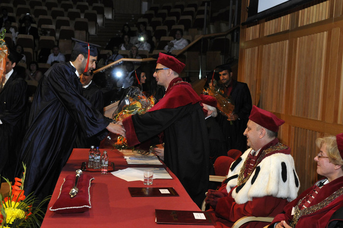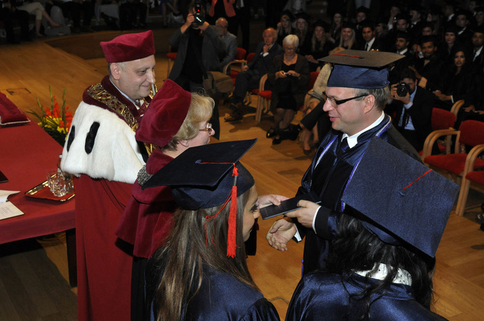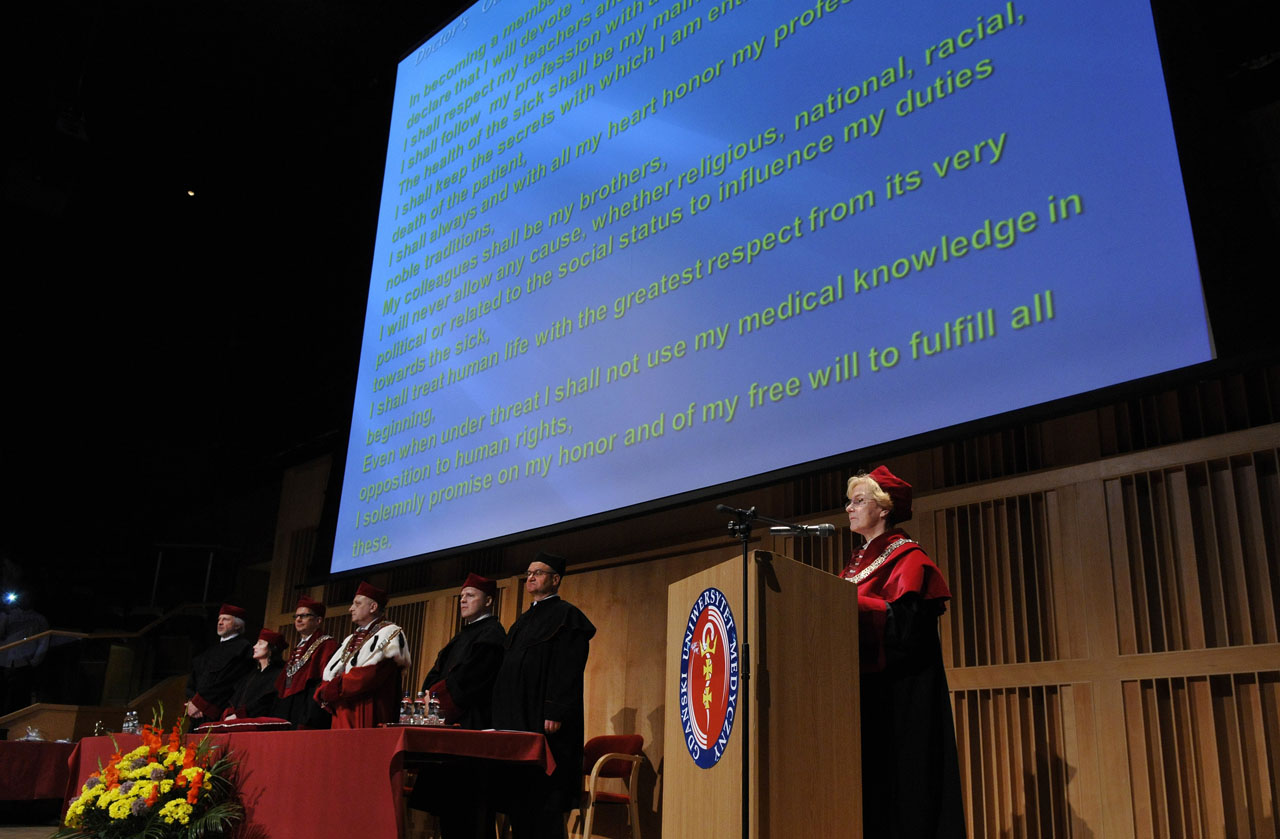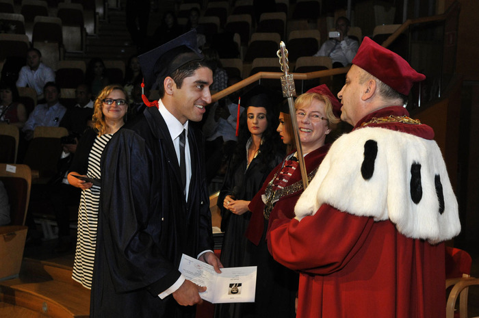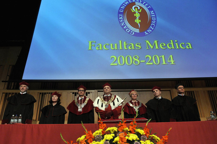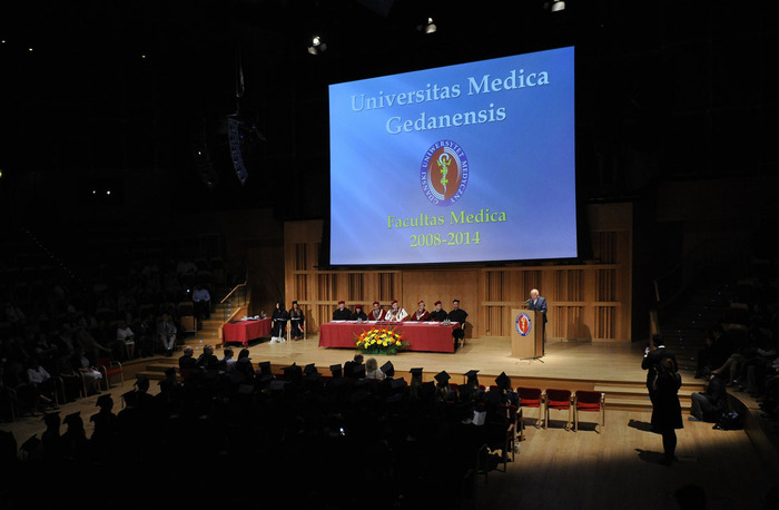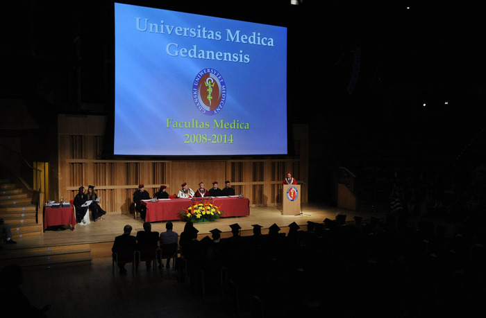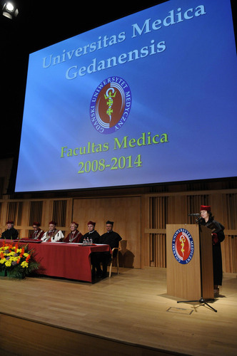 Eighty graduates of the English Division at the MUG Faculty of Medicine received their diplomas from prof. Janusz Moryś (Rector) and prof. Dudziak (Dean of Faculty of Medicine). The ceremony took place on June 24th 2014 at the The Polish Baltic Philharmonic in Gdańsk and featured speeches by prof. Marcin Gruchała (Vice-Rector for Student Affairs), prof. Maria Dudziak, prof. Maria Alicja Dębska-Ślizień (Deputy Dean of the Faculty of Medicine), prof. Brunon Imieliński (Chairman of the MUG Graduates Association) and Peri Ahmad (Class of 2014).