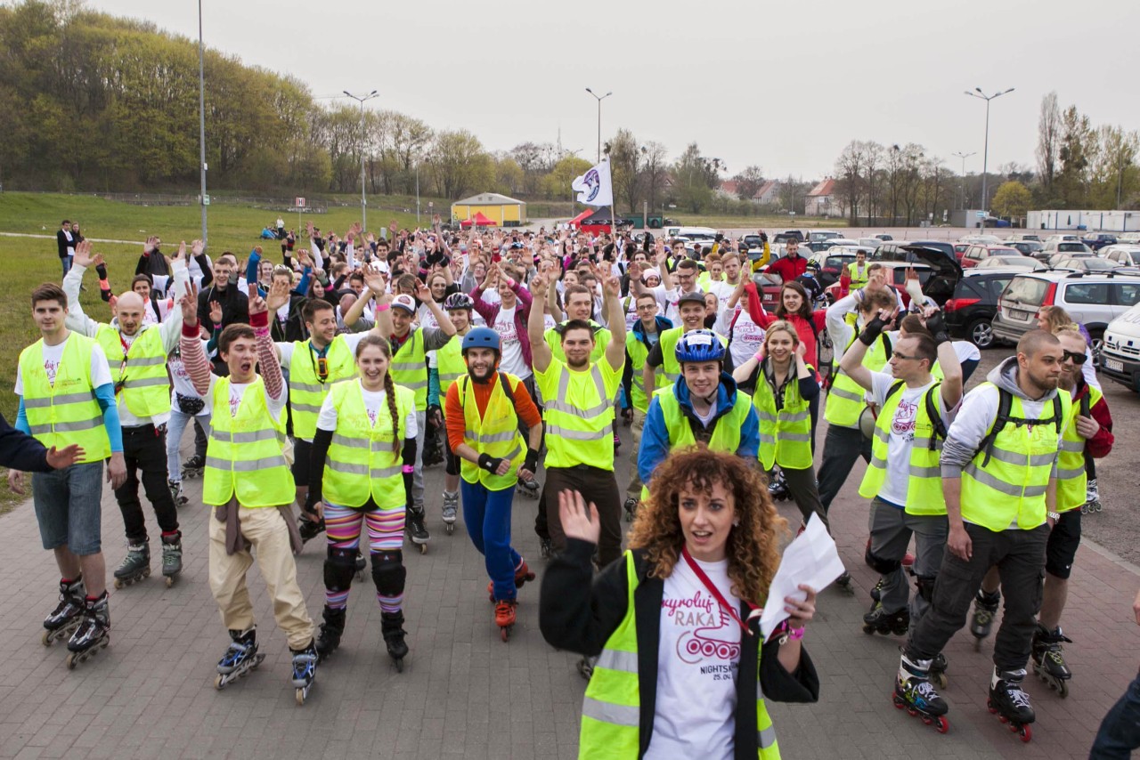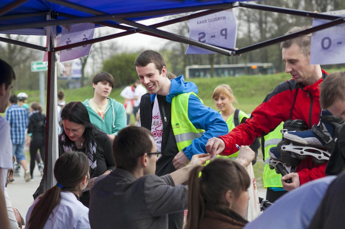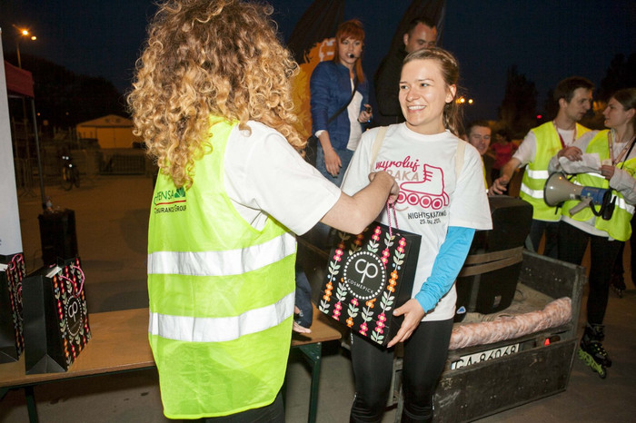 Starting at 17:00 each participant received a start packet that included a “Wyroluj raka” (“Skate through cancer”) shirt, a bag with the event logo, a reflective bracelet and a bottle of water. As always during events organized by these students, the participants had a chance to visit a booth where they could learn more about breast cancer, its warning symptoms and even learn how to properly self-examine breasts.
