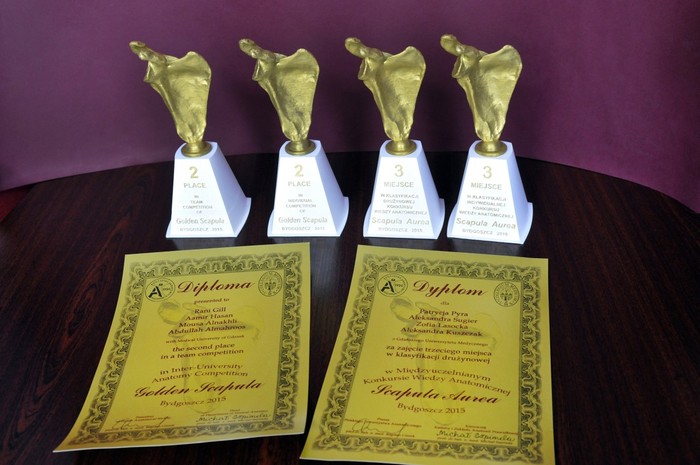After 8 years of break, the students of our University participated in the Intercollegiate Competition of Anatomical Knowledge “Scapula Aurea”. This year’s XXX edition of the Competition was held in Bydgoszcz. Our representatives joined representatives from 9 other medical schools. For the first time in the history of the competition, in addition to representation of students from first year MD programme (Polish Division), students from first year MD programme (English Division) participated in the competition. Students were tutored by Jan Spodnik, MD, PhD. It was a very successful return to the competition, as representatives of the MUG won as many as four awards. In the category of English-speaking students Rani Gill won a 2nd place, while in the category of Polish-speaking students Patricia Pyra won a 3rd place. In the team category ED team (Rani Gill, Aamir Hasan, Mousa Alnakhli, Abdullah Almahroos) won a 2nd place, while PL Team (Patrycja Pyra, Aleksandra Sugier, Zofia Lasocka and Aleksandra Kuszczak) – won a 3rd place. The Anatomy Student Scientific Club associated with Department of Anatomy and Neurobiology actively participated in practical preparation of students.