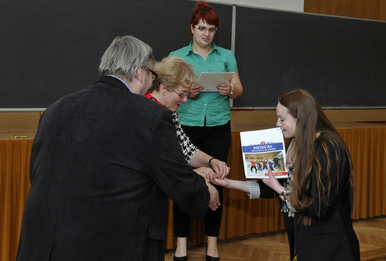 On 29th May 2015 the ceremony of completing the Premedical Course conducted by MUG for the English speaking students during the academic year 2014/2015 has taken place. The ceremony was honored by the presence of the Dean of the Faulty of Medicine prof. Maria Dudziak.