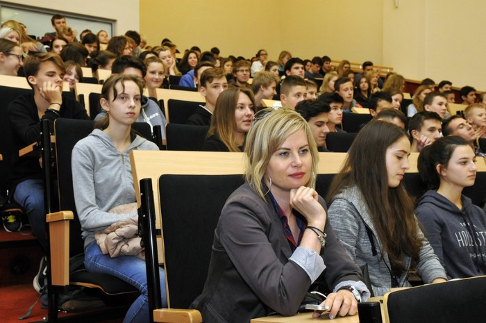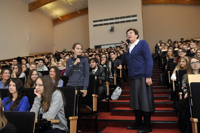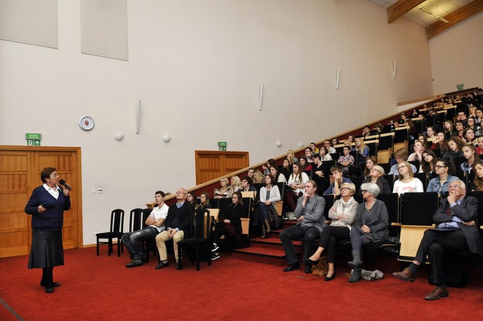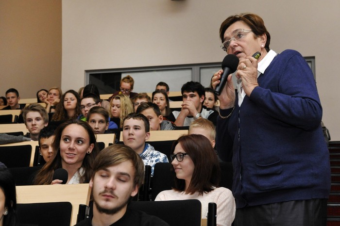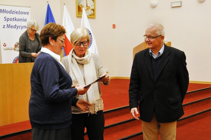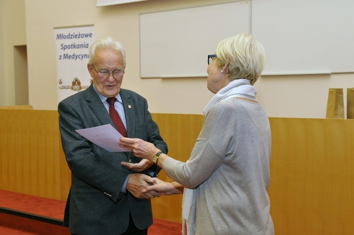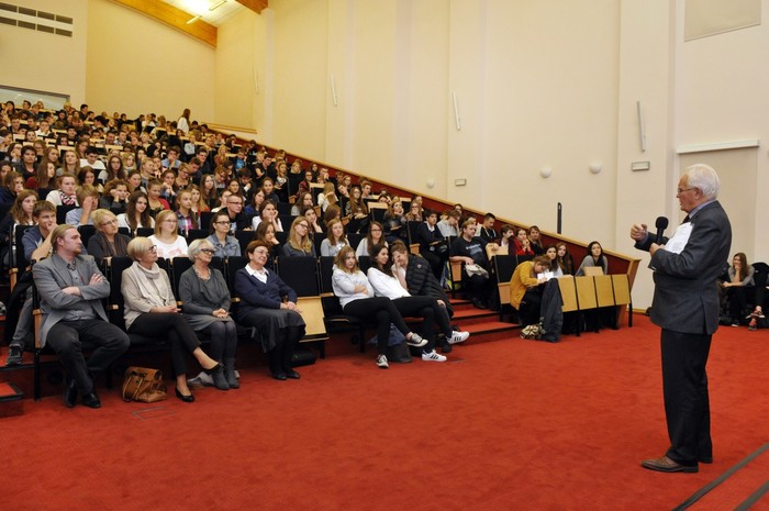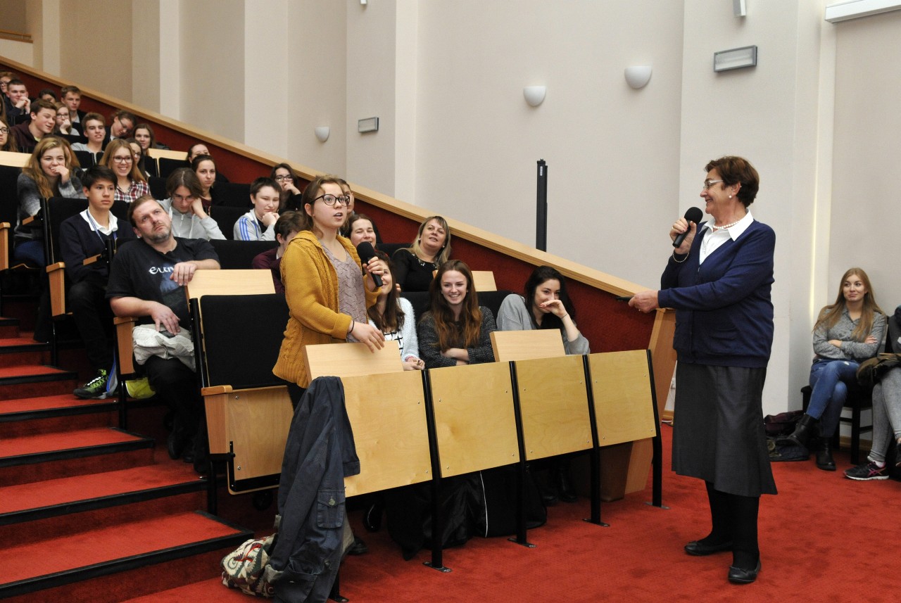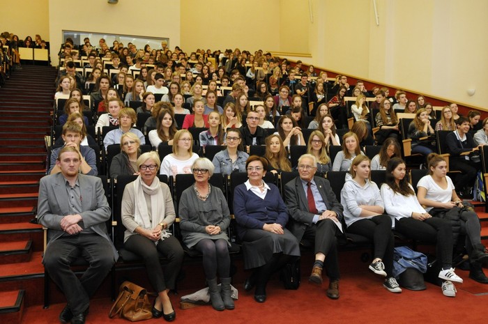 The Youth Meetings with Medicine started with lecture devoted to Hashimoto’s diseaseby Michał Prusiński , student of the Academic High School in Gdynia. Presentation about “Vilnius roots Medical University of Gdańsk” was delivered by the former MUG Rector prof. Wiesław Makarewicz. The principles of healthy eating were explained by prof. Barbara Kamińska from the MUG Department of Pediatrics, Gastroenterology, Hepatology & Pediatric Nutrition.