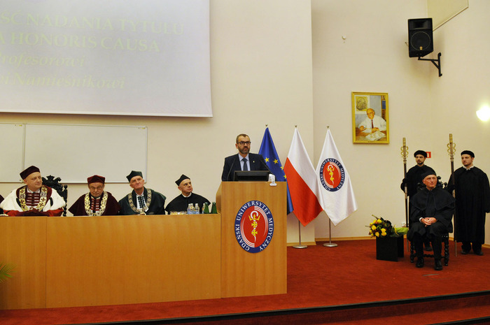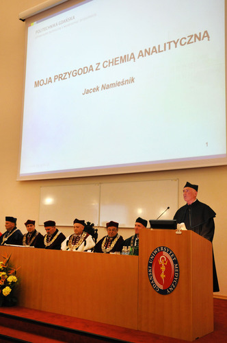 Medical University of Gdansk has a new honorary doctorate . Senate meeting dedicated to granting the title of professor Jacek Namieśnik held on 25 November 2015 at the prof. Narkiewicz Auditorium Primum. During the ceremony, prof. Jacek Namieśnik gave occasional lecture “My adventure with Analytical Chemistry”.
