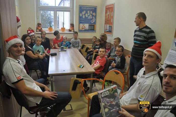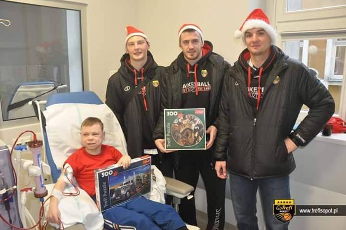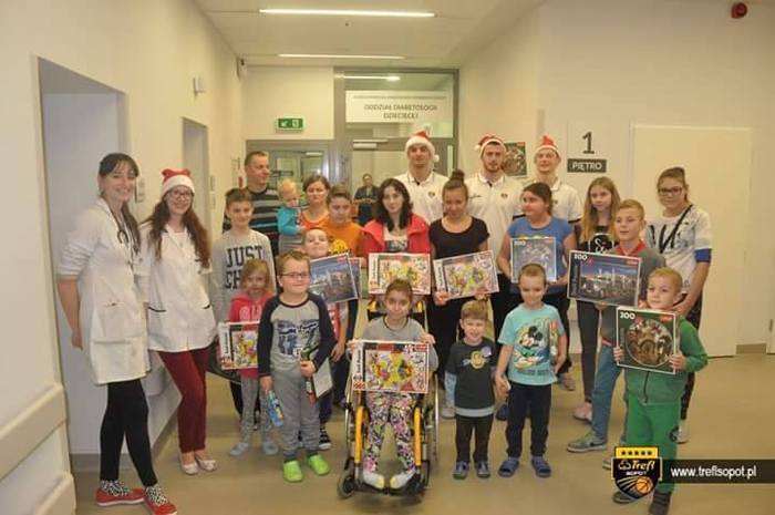 Members of SKN from the Clinics of Paediatrics, Diabetology and Endocrinology organized a Secret Santa for children. The meeting brought together children from the Clinic of Paediatric Cardiology and Congenital Heart Defects. Santas were Trefl Sopot basketball players: Sławomir Sikora, Josip Bilinovac i Paweł Dzierża who gave away gifes all children.