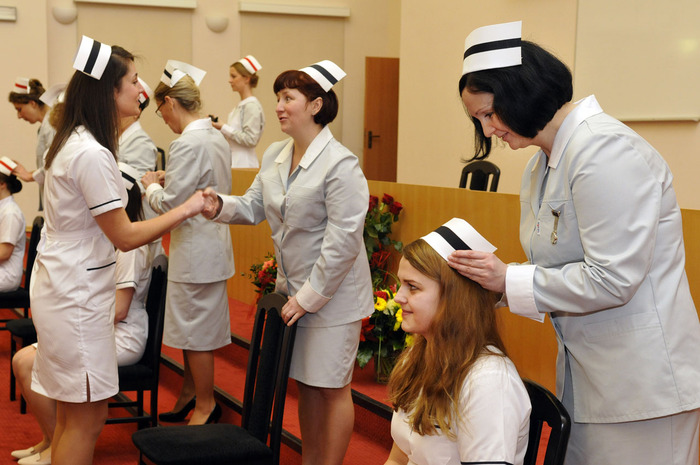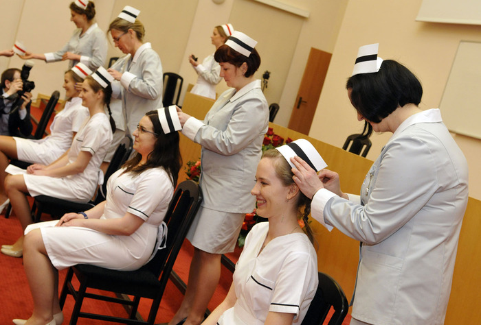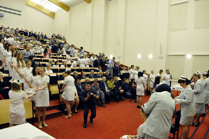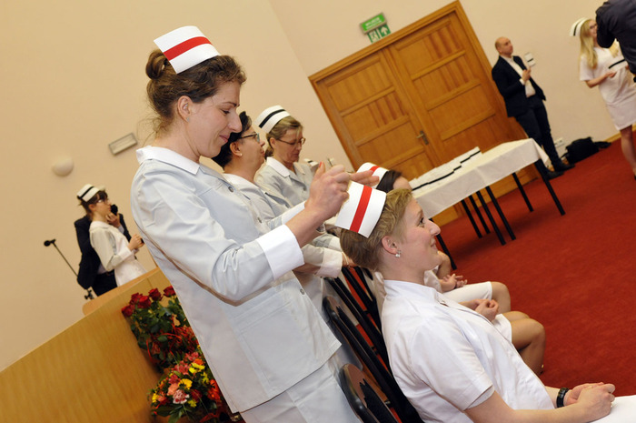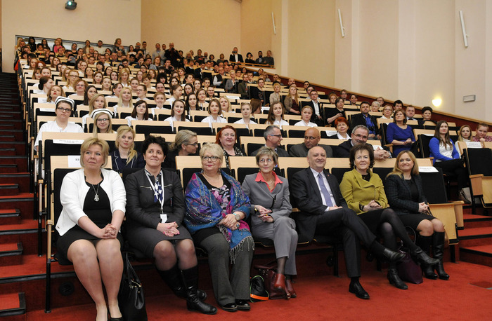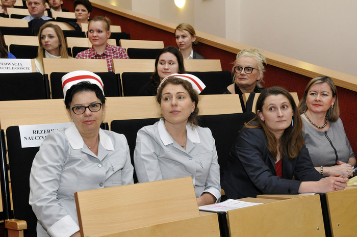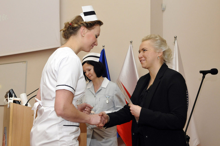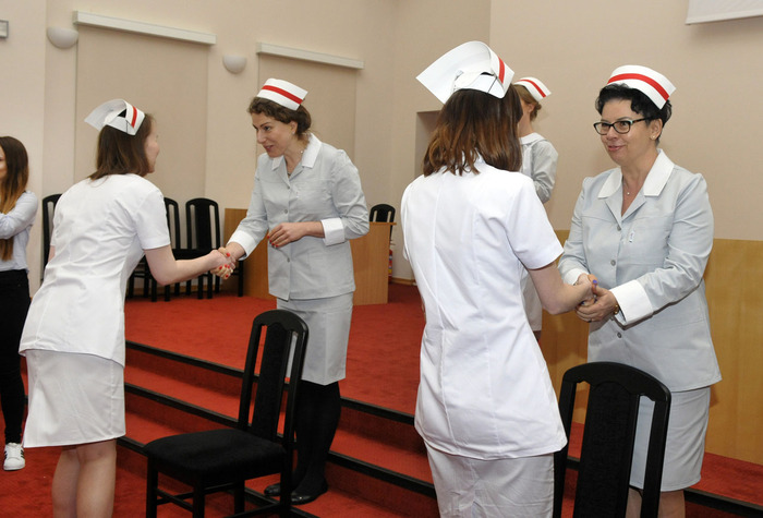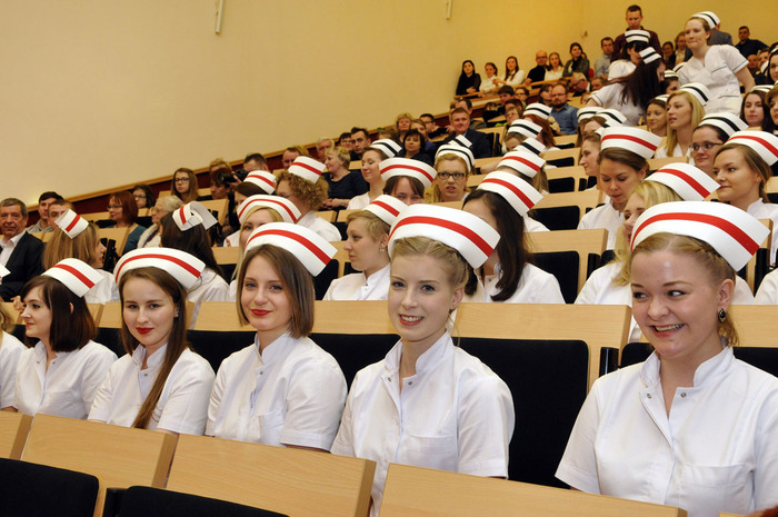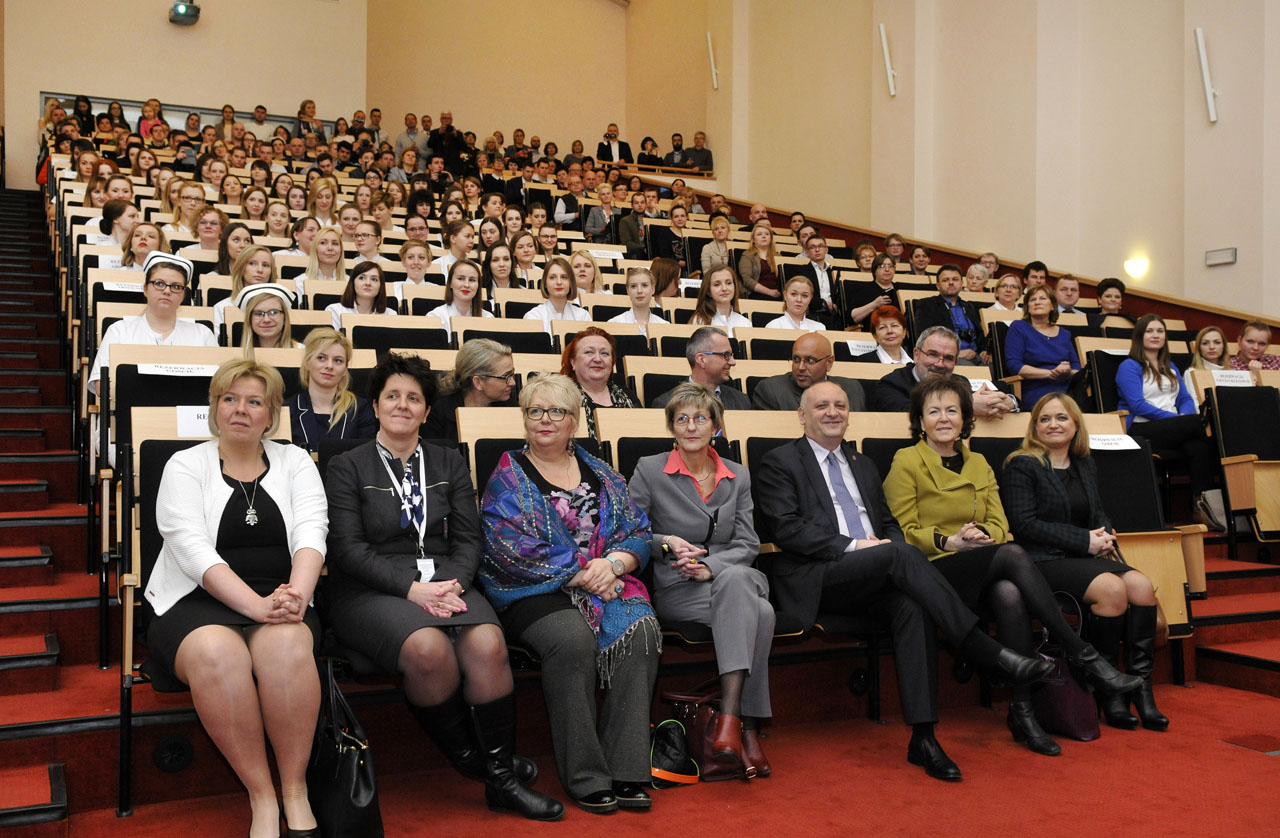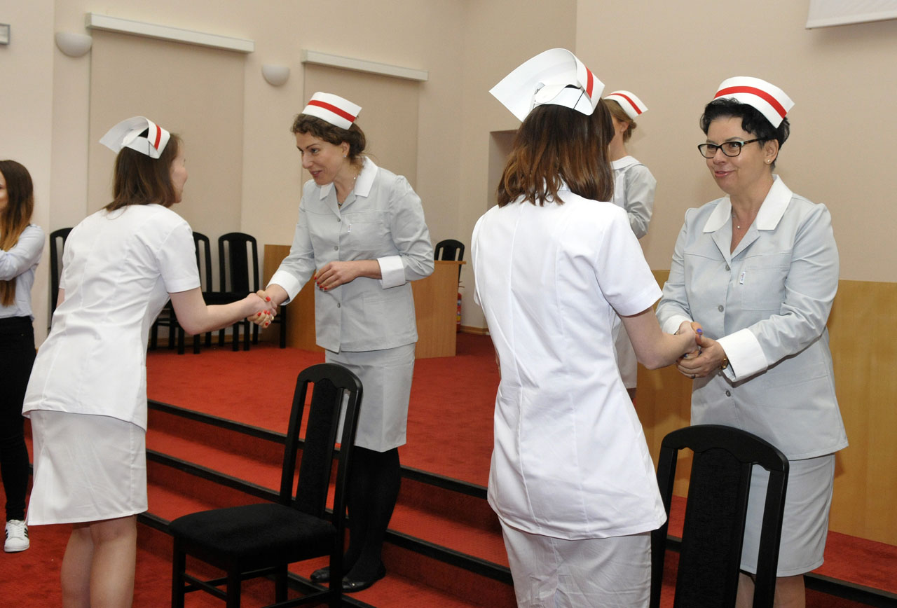 The traditional capping ceremony for the graduates of the nursing and midwife programs of the MUG Faculty of Health Sciences took place on June 22st 2016. The graduates, their families and friends, MUG authorities and staff as well as special guests (representatives of the local nursing and midwife chamber, the authorities and the University Clinical Centre authorities) gathered in the auditorium. Students wearing traditional clothing opened the ceremony by bringing lit candles to the auditorium, symbolizing the life entrusted to the care of nurses and midwifes. The ceremony was conducted by dr hab. n. med. Aleksandra Gaworska-Krzemińska , Haed of the Subfaculty of Nursing. The caps worn by the graduates symbolize belonging to their new profession, service to people and obligation to maintain traditions of these beautiful yet difficult professions. The oath repeated by out loud by the graduates is an introduction to the Nurse and Midwife Code of Professional Ethics of the Republic of Poland. In addition, the graduates sang the Nursing Anthem. The ceremony ended thanks Graduates speech prof. Janusz Moryś and invited guests. After them were made commemorative photos, which will be a memento of the event.