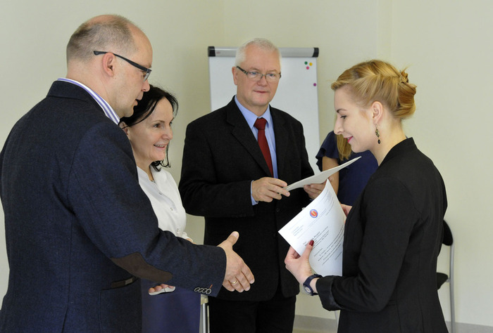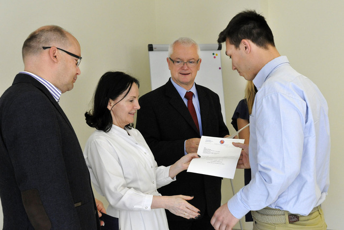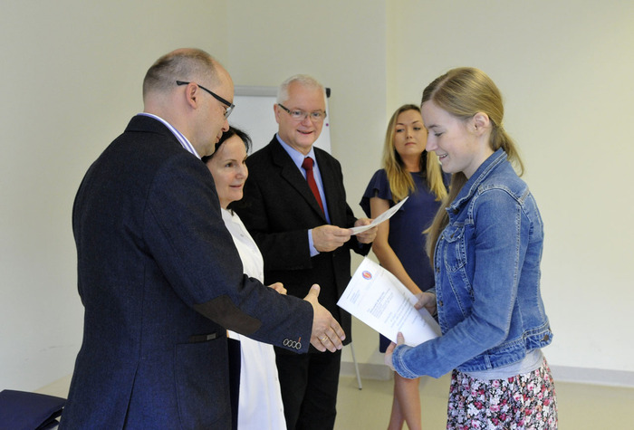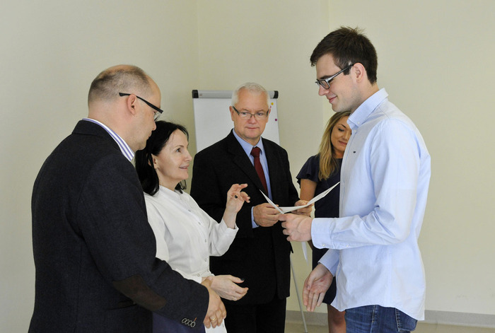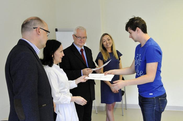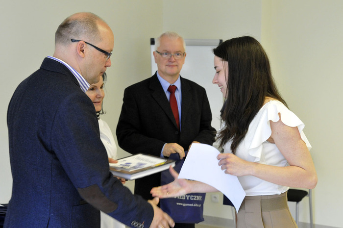 Finale of the “ABC internal medicine and EKG”, the oldest competition organized in MUG took place on June 6th. During the solemn summary of the Competition diplomas and prizes were funded by Via Medica. Awards handed the Deputy Dean of the Faculty of Medicine prof. Alicja Dębska-Ślizień. This year’s winner is Szymon Hoppe, second place received Dominika Krenska, and the third place received to Anna Nagórka.