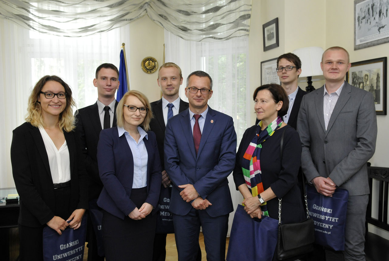 Rector prof. Marcin Gruchała met and thanked MUG students. Adam Bęben, Łukasz Adamski, Kacper Winiarski, Jakub Jastrząbek, Jagoda Wieczorek, Joanna Dąbrowska i Sonia Taniewska got diplomas and university gadgets. Among the distinction was also Ewa Raniszewska Ph.D from the Department of Emergency Medicine. For 20 years serves as a guardian SKN Emergency Medicine. Her knowledge and support accompanied by members of the Circle during almost every action.