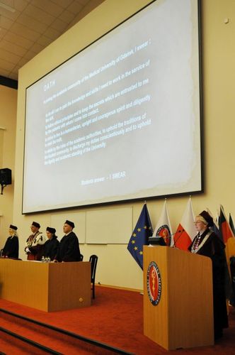 More than 640 students officially began the academic year at the Medical Faculty of the Medical University of Gdańsk. First year dentistry students (76 at the DDS programme and 42 at the dental techniques programme). Today 30th of Septamber 2016, 270 Polish and 180 English Division medical students began their studies. The matriculation ceremonies were held at the Olgierd Narkiewicz Auditorium Primum.