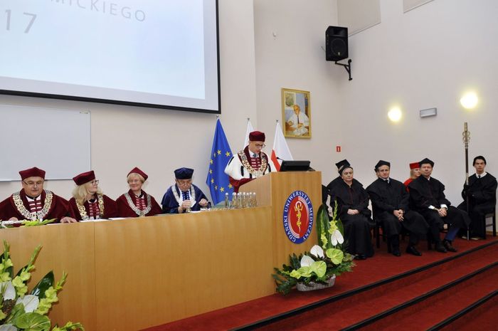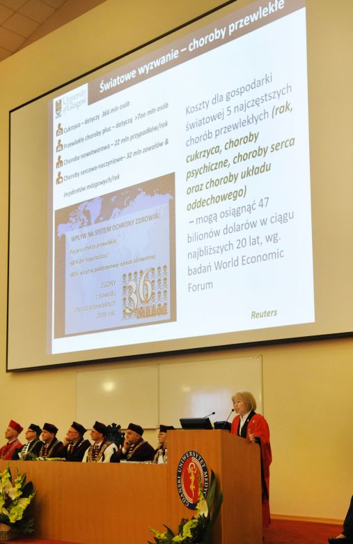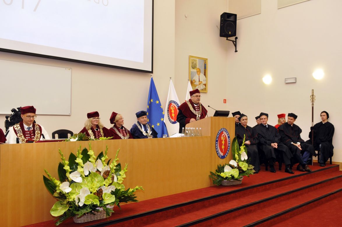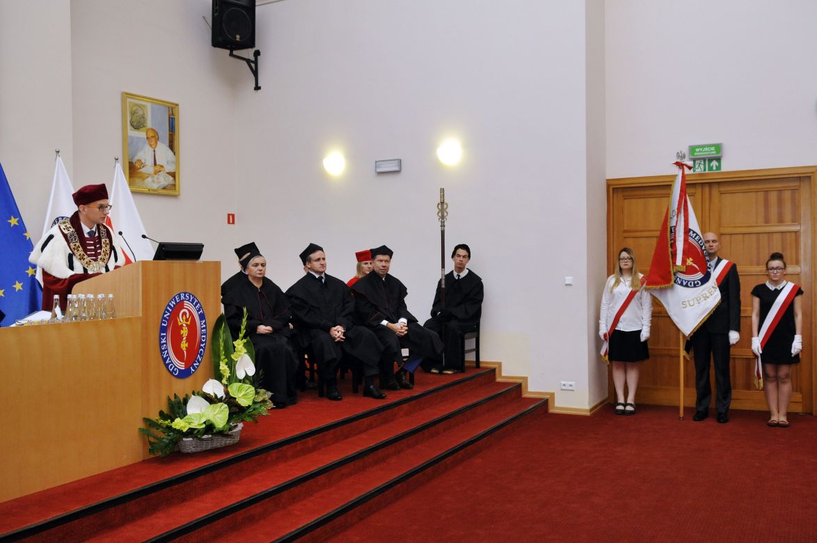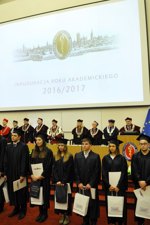 On October 7th 2016, nearly 1400 students officially began their first year of studies at the MUG. The Inauguration ceremony took place at 10:00 at the prof. Narkiewicz Auditorium Primum. During the ceremony Rector prof. Marcin Gruchała delivered the inaugural speech. The lecture “Precision Medicine” delivered by prof. Anna Dominiczak, a MUG graduate, the daughter of prof. Joanna Muszkowska-Penson and prof. James Penson, a deputy director and head of the College of Medical, Veterinary and Life Sciences University of Glasgow.