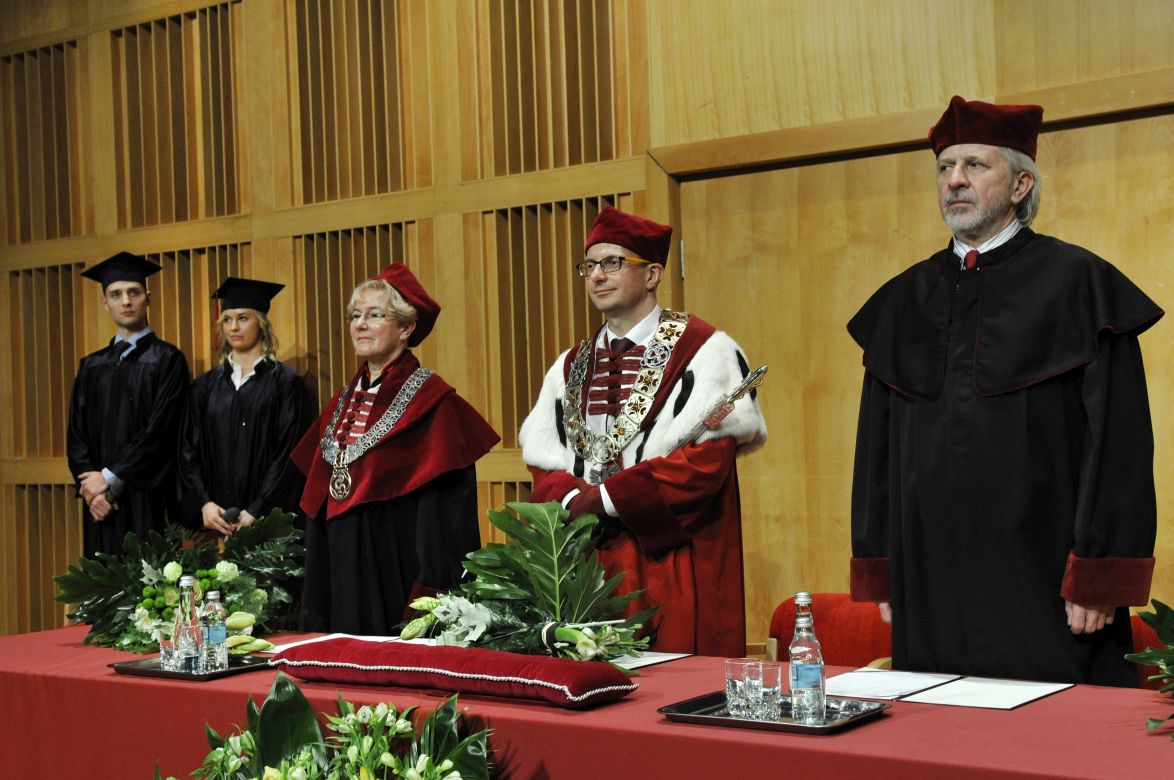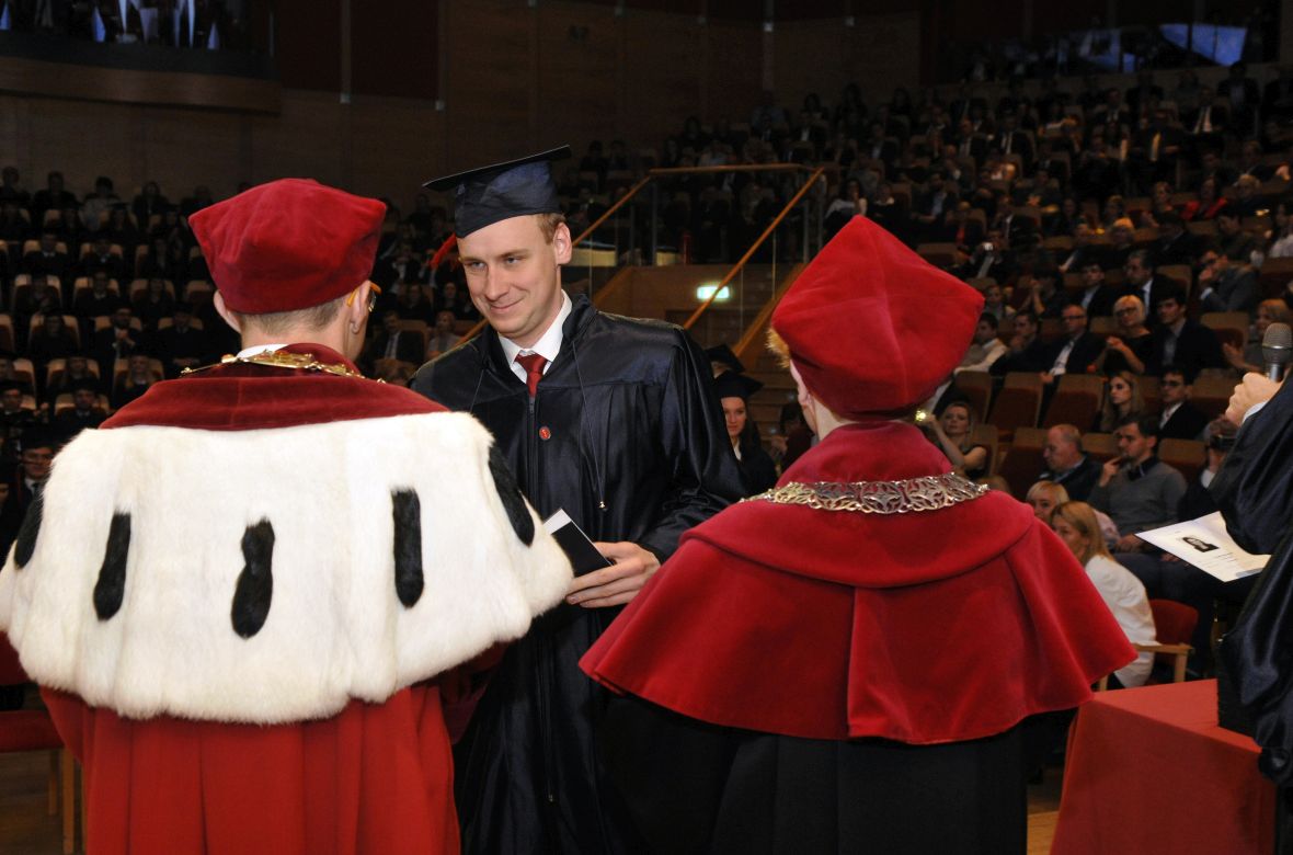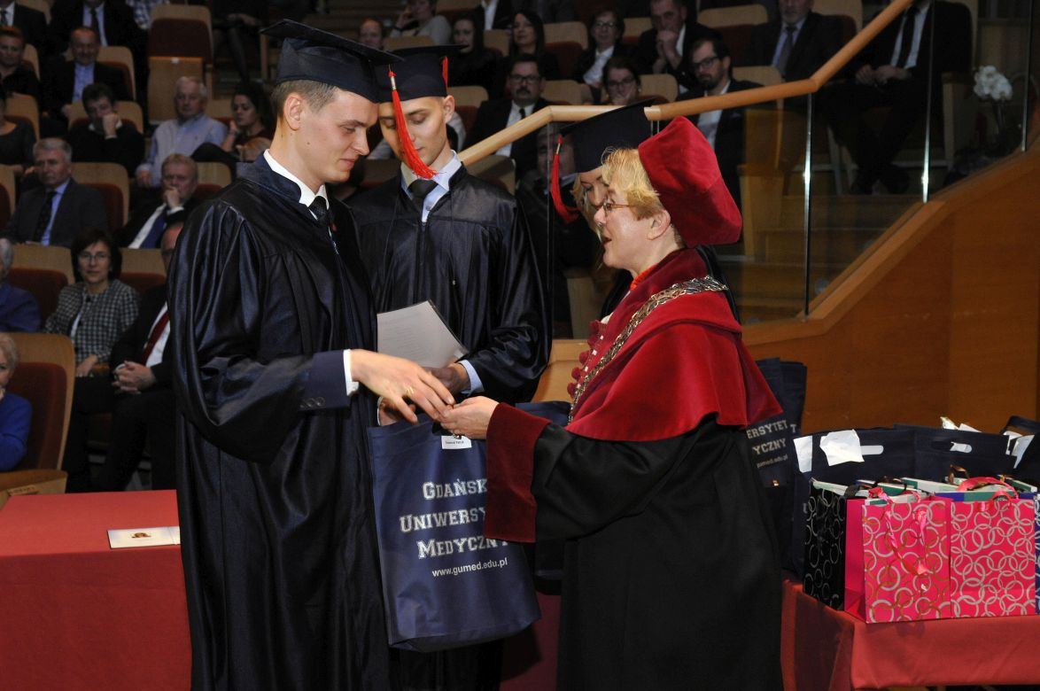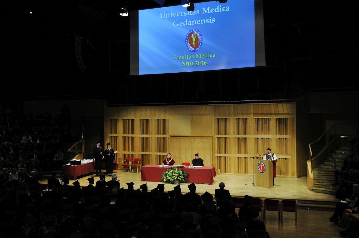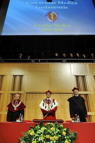 Two hundred and ten graduates of the medical studies at the MUG Faculty of Medicine of the 2010-2016 received their diplomas from prof. Marcin Gruchała (Rector) and prof. Maria Dudziak (Dean of Faculty of Medicine). Medal Primus Inter Pares got Michal Kunc M.D.