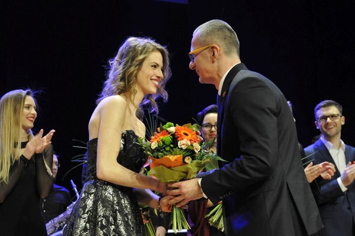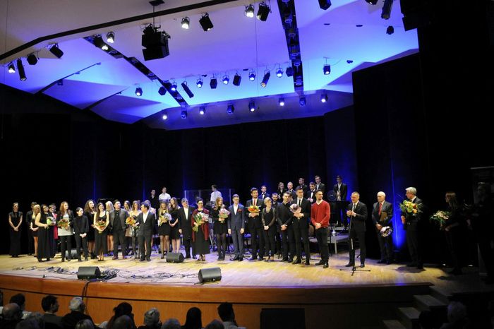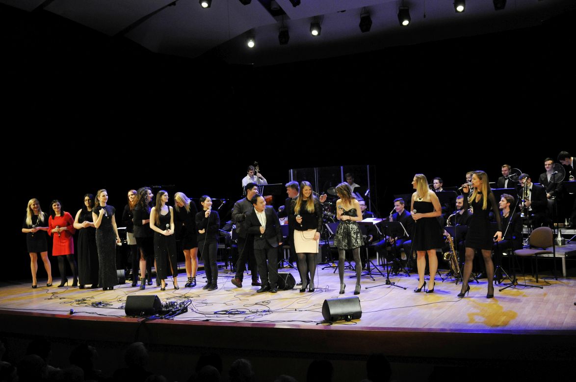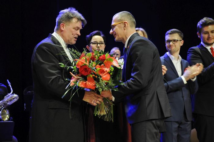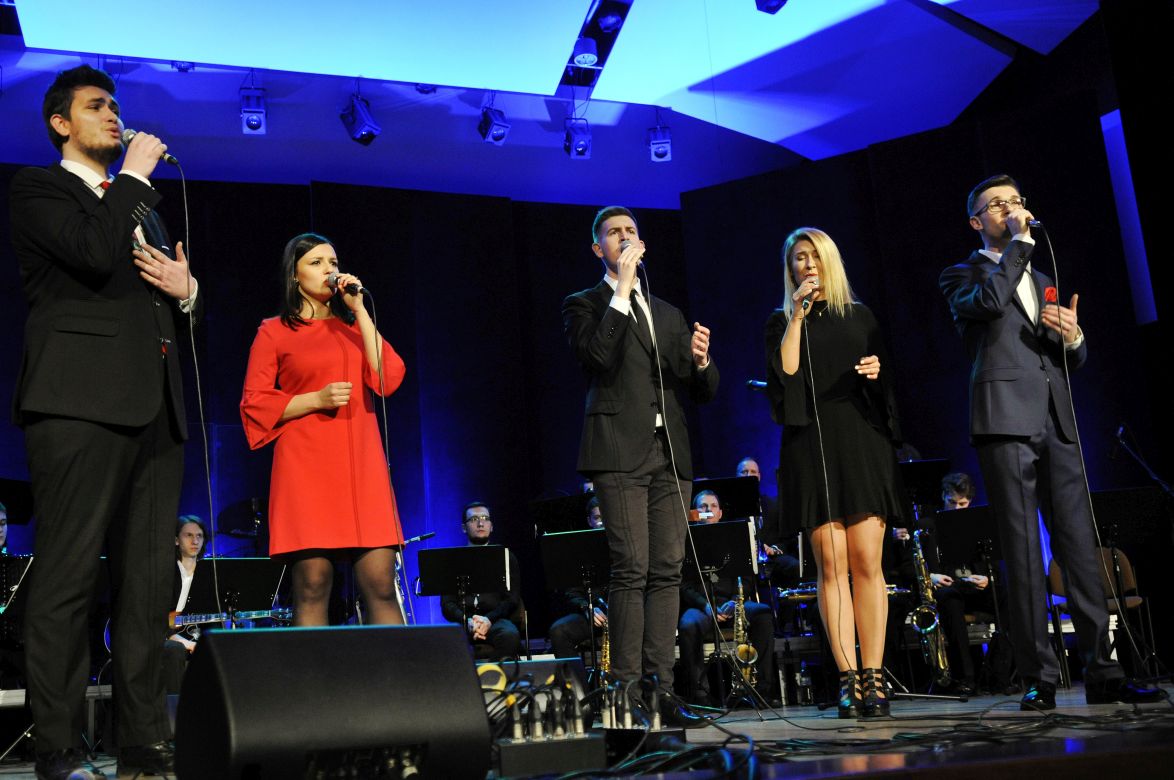 More than 450 people listened to the New Year’s Concert of the Medical University of Gdańsk which took place on 14 January, 2017 at the Academy of Music in Gdańsk. The programme of the Concert included such songs as “I’ve got you under my skin”, “Sing, Sing, Sing”, “Joyful, Joyful”, “Have Yourself a Merry Little Christmas”, “White Christmas”, “Silent Night” and others. The Big Band Gdańsk was conducted by Jan Konop. At the end of the event, prof. Maciej Sobczak, rector of the Academy of Music and prof. Marcin Gruchała, rector of the Medical University of Gdańsk, handed bouquets of flowers to artists. Prof. Gruchała expressed his thanks and enchantment.