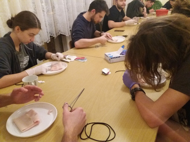 Concentration, patience, accuracy – this is what students of the International Federation of Medical Student Associations (IFMSA) Gdańsk branch practiced at surgical suturing workshop on January 13th this year. Practical exercises preceded by a brief theoretical introduction, during which participants learned about types of surgical threads and different ways of dressing surgical wounds. The workshop was conducted by Ksawery Bieniaszewski, a member of the Surgery Students Circle.