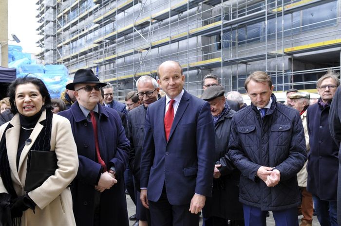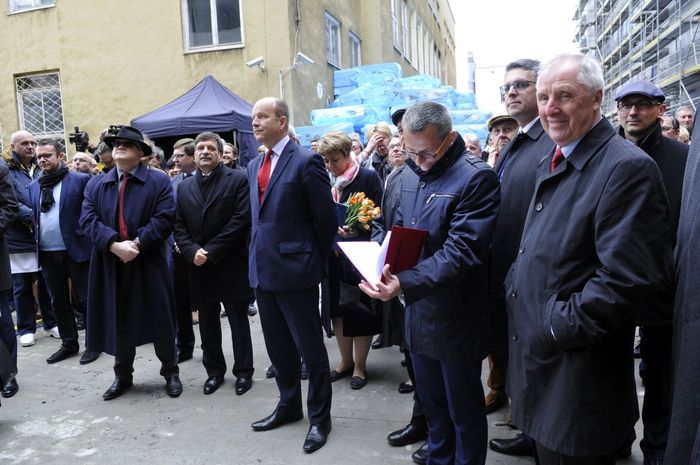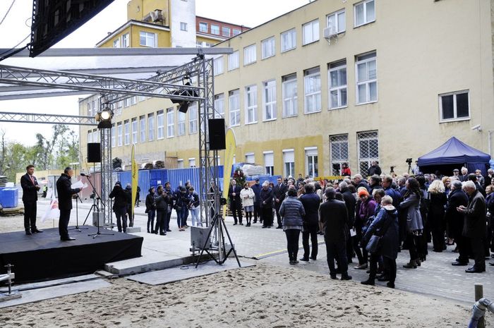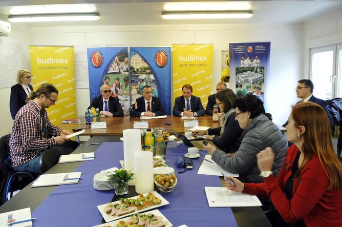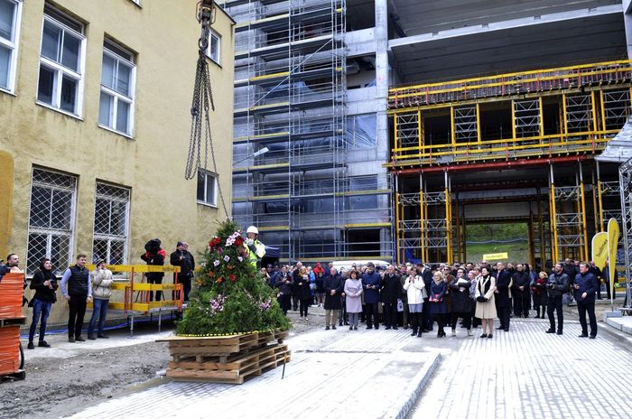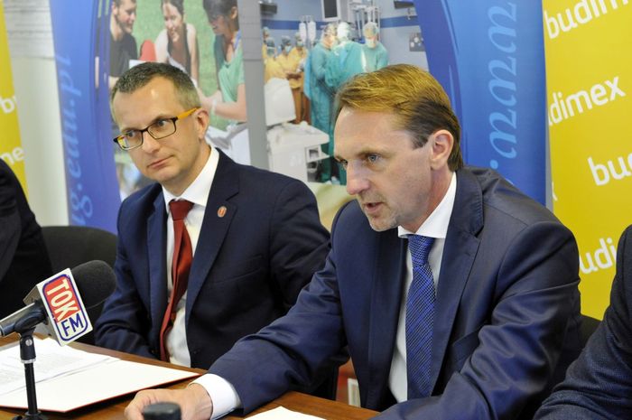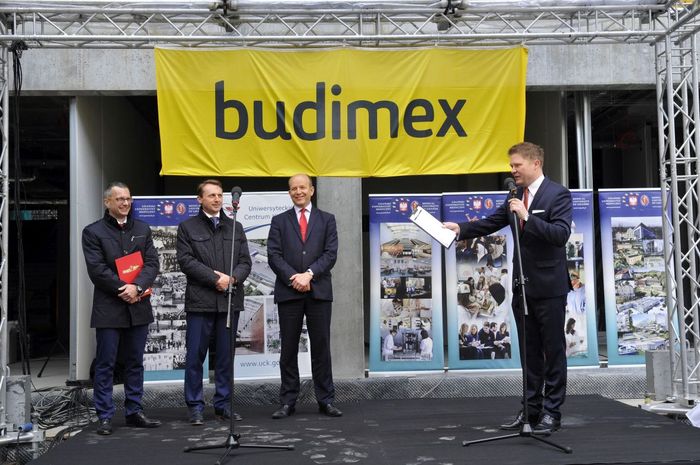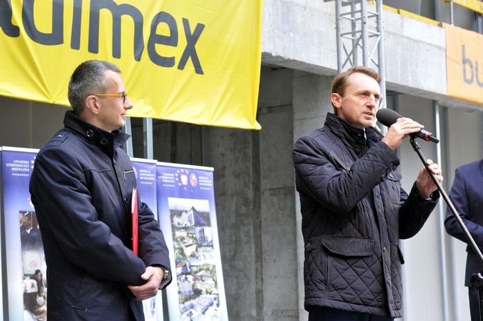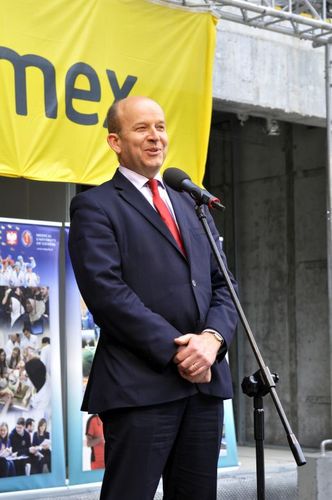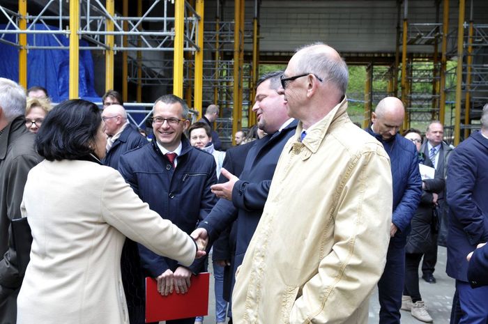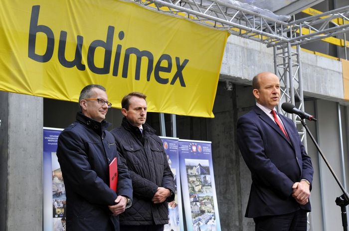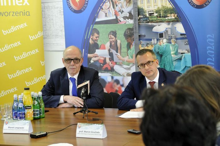 The construction of the MUG’s Non-Invasive Medicine Centre has reached the stage when the last beam has been placed atop its structure. The ceremony of topping out took place on the 8th of May at Smoluchowskiego street, on the hospital territory. The MUG’s Rector prof. Marcin Gruchała participated in the event together with Minister of Health Konstanty Radziwiłł, Deputy Marshal of Senate Bogdan Borusewicz, Secretary of State in the Ministry of Infrastructure and Construction Kazimierz Smoliński, Under-Secretary of State in the Ministry of Health Katarzyna Głowala, as well as representatives of Pomerania authorities, Budimex the general contractor, and Arch-Deco studio from Gdynia that created the investment project. The ceremony was preceded by a press conference.