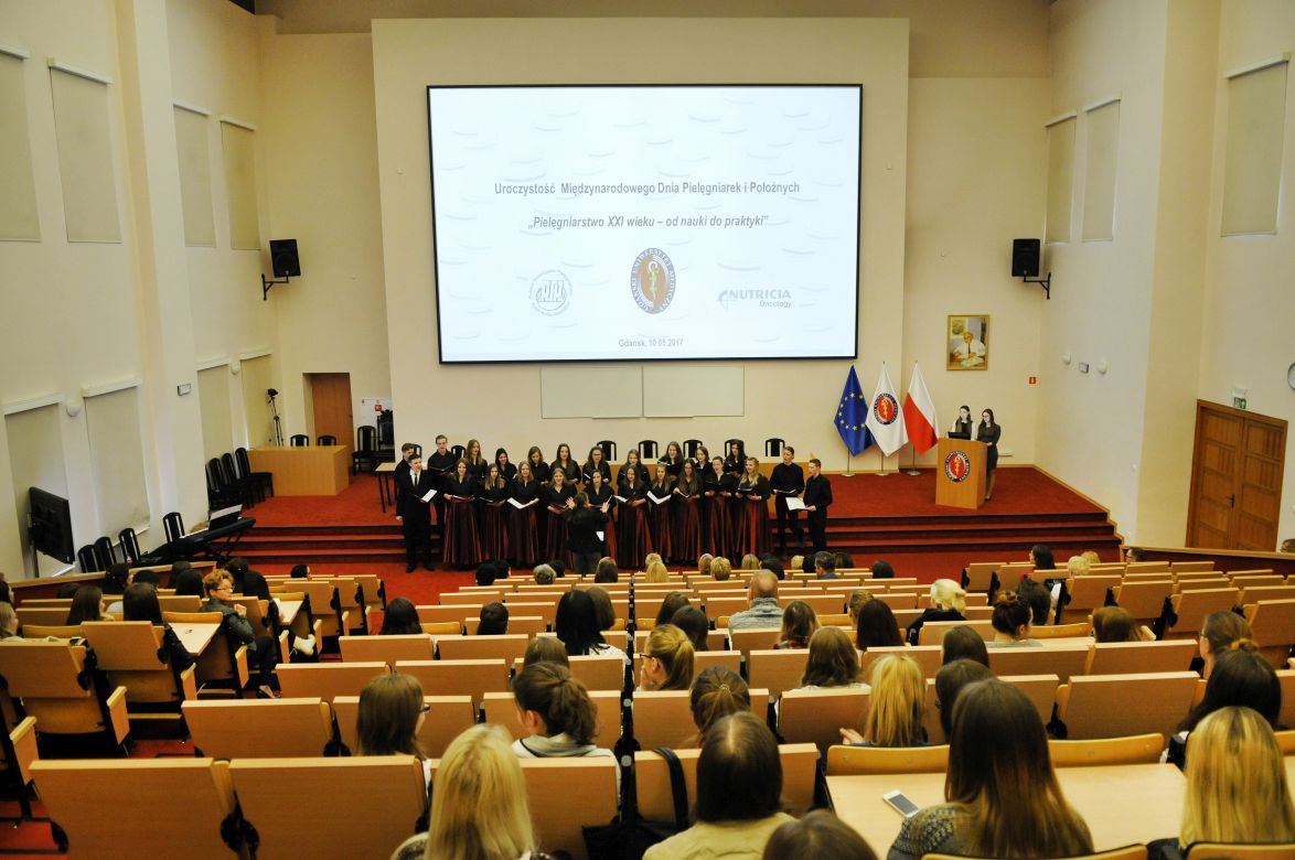 The International Nurses Day (IND) is an international day celebrated around the world on the 12th of May. Yesterday in the Atheneum Gedanense Novum building #MUG nurses and midwives celebrated their day. They hosted many eminent guests such as prof. Jacek Bigda M.D. Ph.D. Vice-Rector for Development and Education, Aleksandra Gaworska-Krzemińska M.D. Ph.D. Head of the Department of Nursing, Danuta Adamczyk-Wiśniewska Vice-President of Regional Chamber of Nurses and Midwives in Gdańsk, as well as present and future specialists in the field. The ceremony has been enriched by numerous lectures and the performance of the Marian Mokwa choir from the high school No. 19 in Gdańsk.