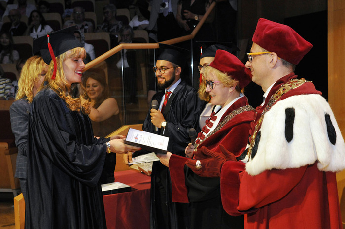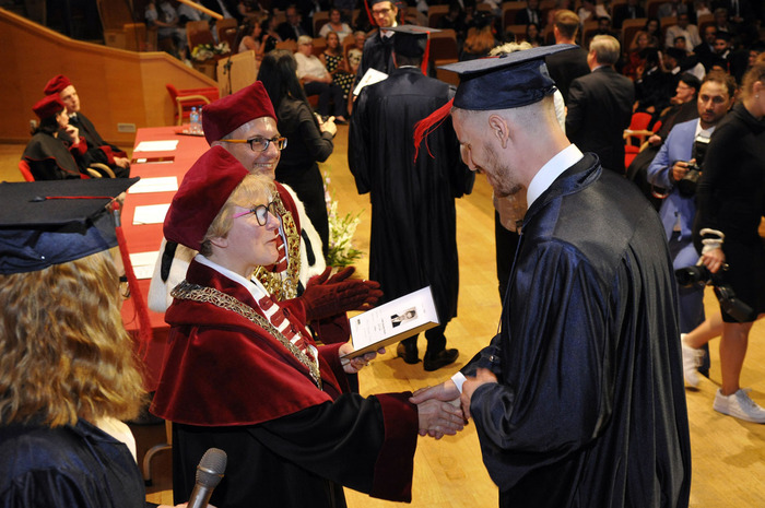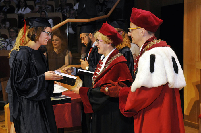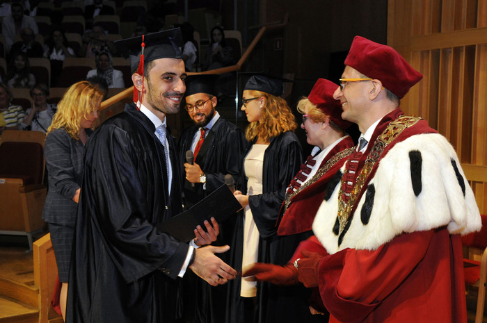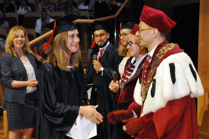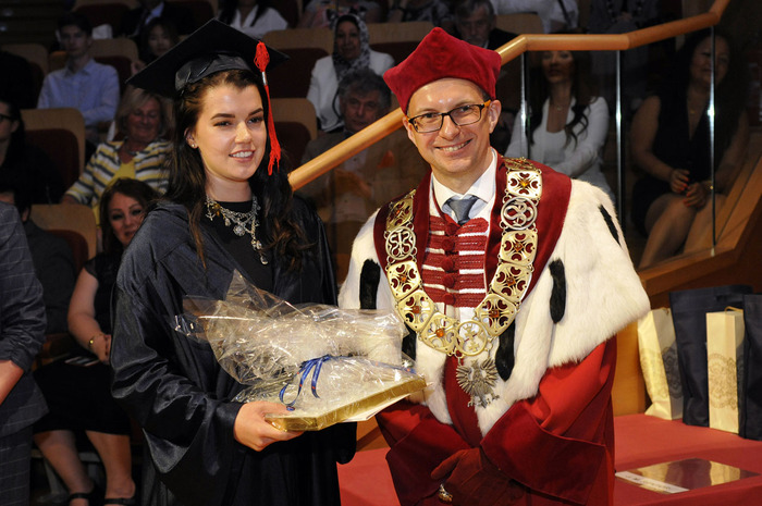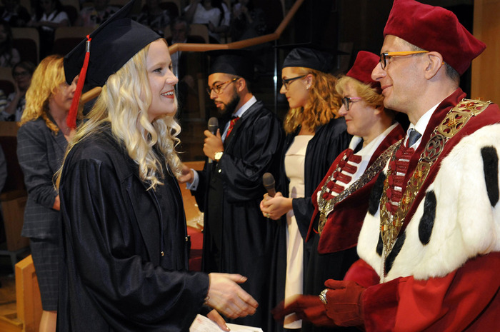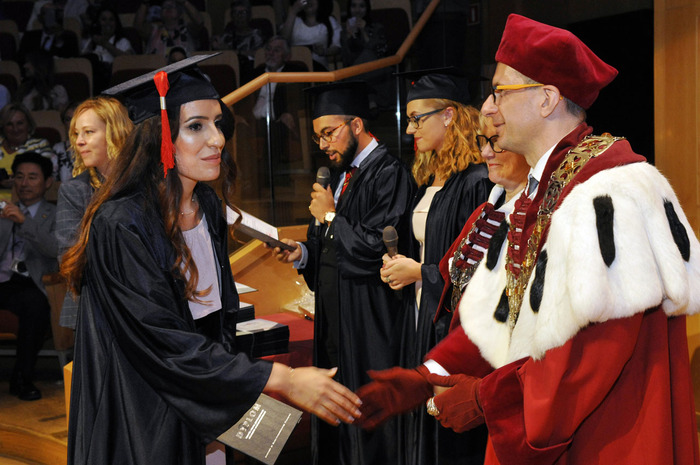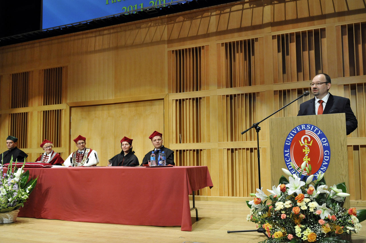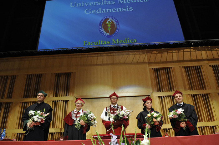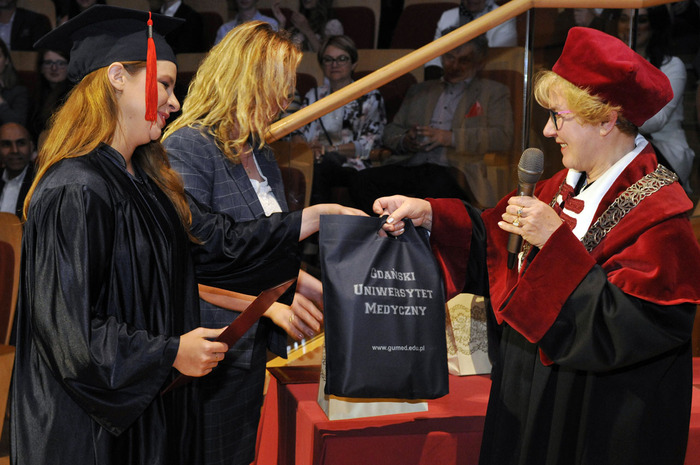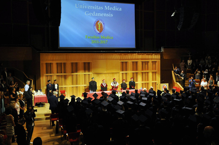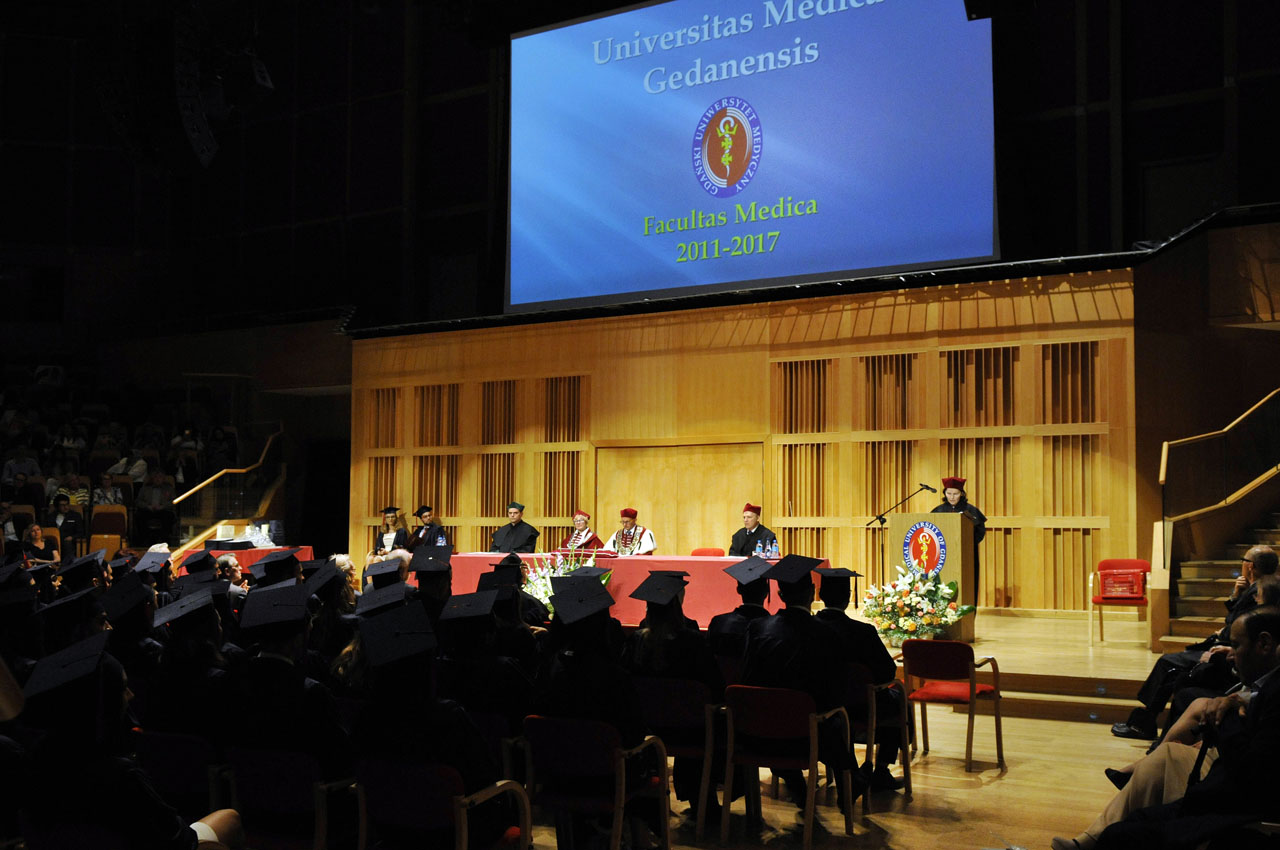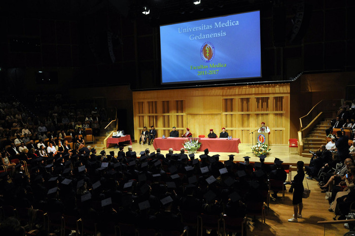 Prof. Marcin Gruchała, the MUG’s rector, and prof. Maria Dudziak, Dean of the Faculty of Medicine handed diplomas to one hundred and three graduates of the Faculty of Medicine, the English Division, year 2011-2017. The ceremony took place in the building of the Polish Baltic Frederic Chopin Philharmonic.