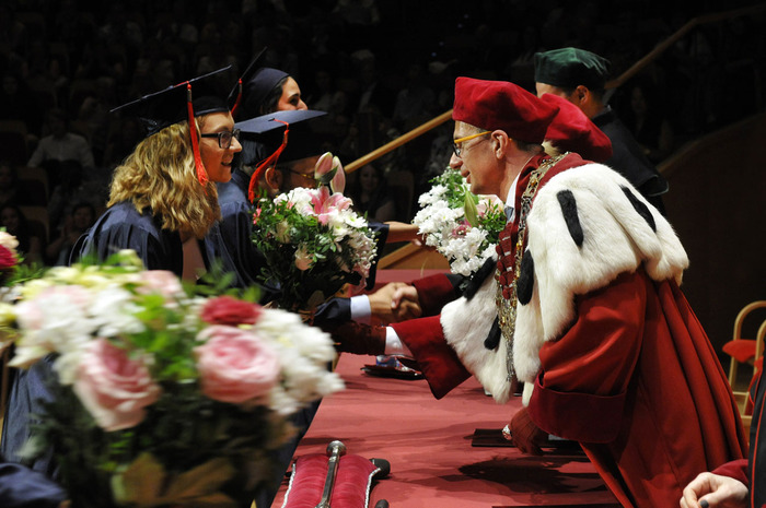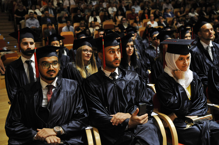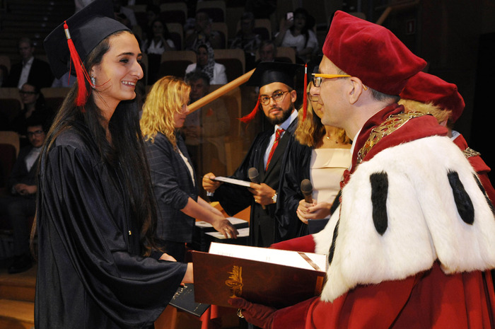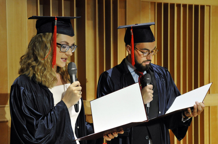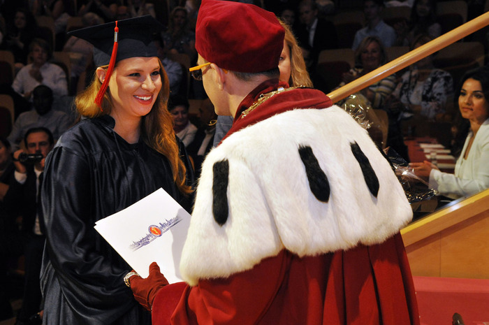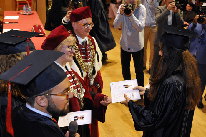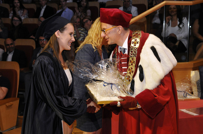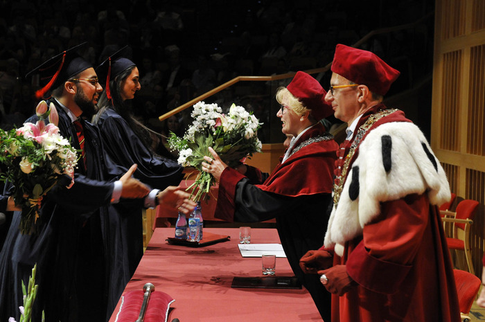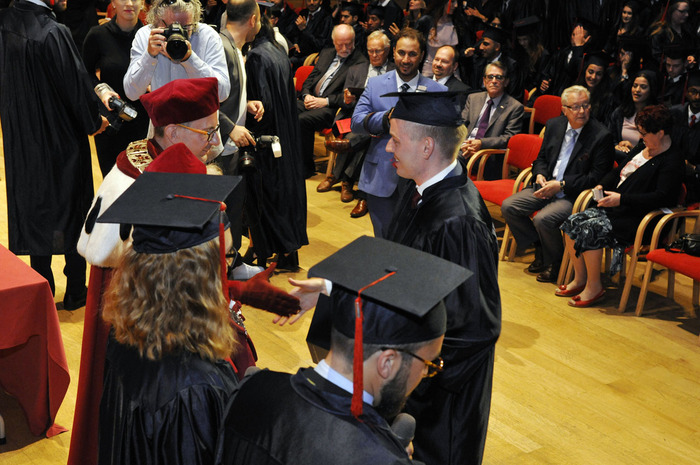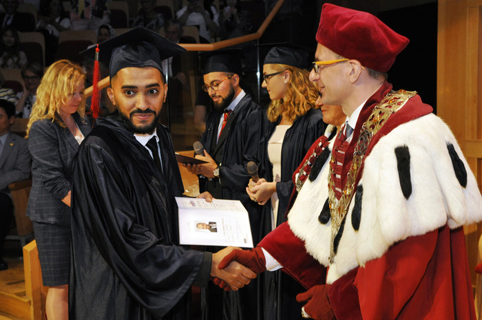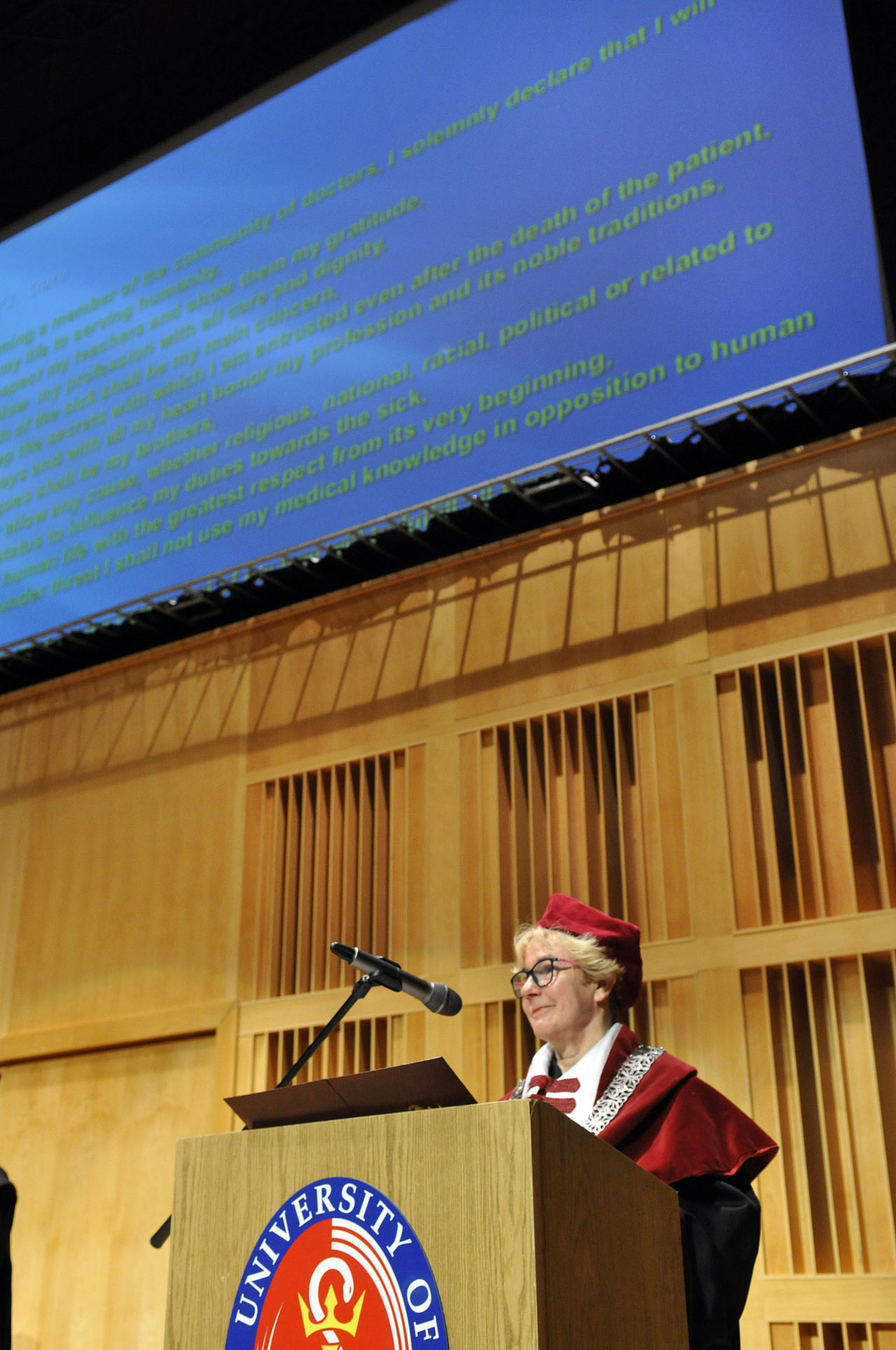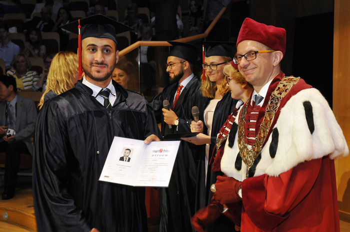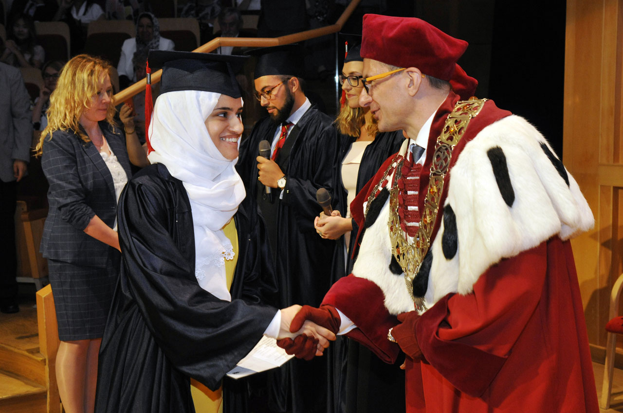 Prof. Marcin Gruchała, the MUG’s rector, and prof. Maria Dudziak, Dean of the Faculty of Medicine handed diplomas to one hundred and three graduates of the Faculty of Medicine, the English Division, year 2011-2017. The ceremony took place in the building of the Polish Baltic Frederic Chopin Philharmonic.