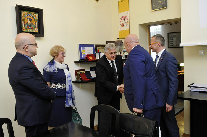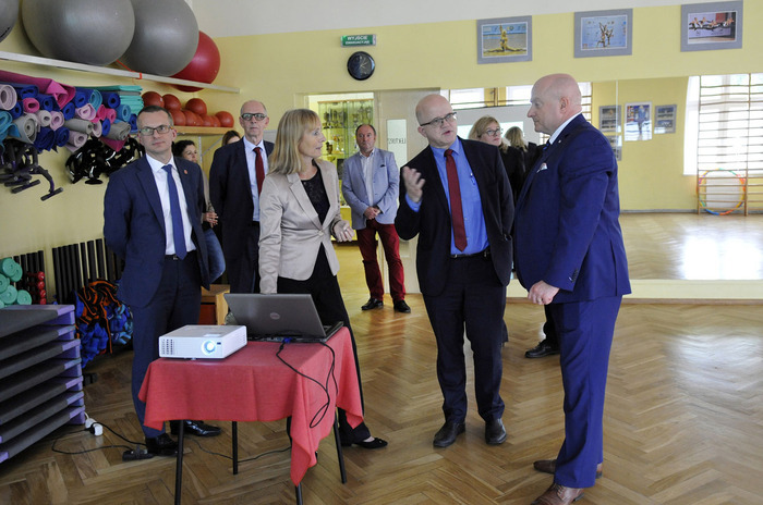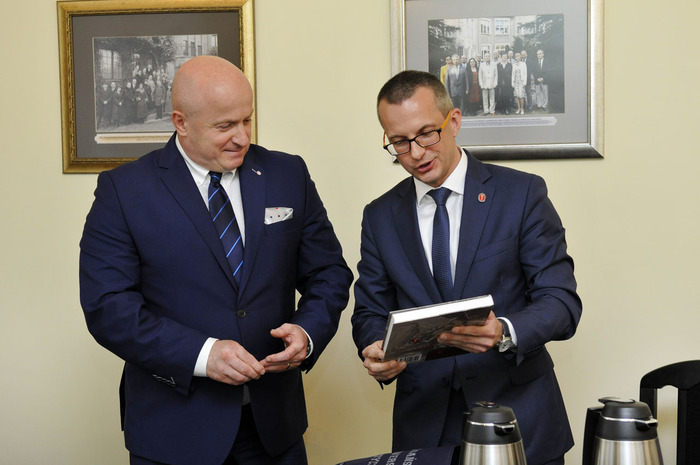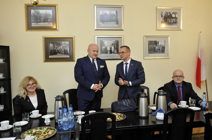 Jarosław Stawiarski, Secretary of State at the Ministry of Sport and Tourism visited the MUG on July 4th. The meeting attended Rector prof. Marcin Gruchała M.D., Ph.D., member of the Polish parliament prof. Grzegorz Raczak M.D., Ph.D., Vice-Rector for Clinical Affairs prof. Edyta Szurowska M.D., Ph.D., Vice-Rector for Student Affairs Tomasz Smiatacz M.D., Ph.D., Dean of the Faculty of Medicine prof. Maria Dudziak M.D., Ph.D. and Chancellor Marek Langowski M.A.
