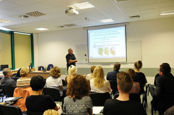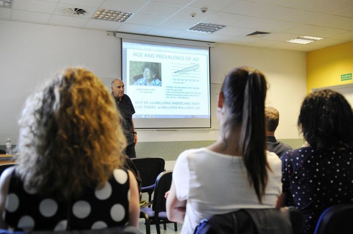 Professor presented research results on detecting the mechanism that causes Alzheimer’s disease, as well as the illness’ prevention – a healthy lifestyle and diet. After the lecture, Professor answered specific questions from the audience.