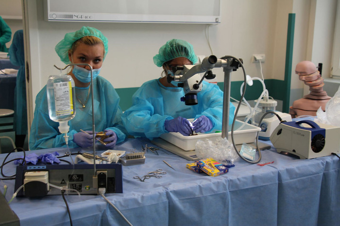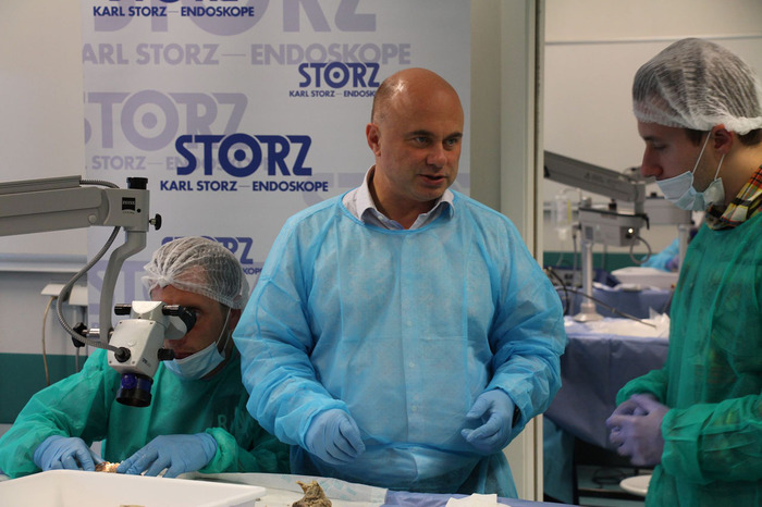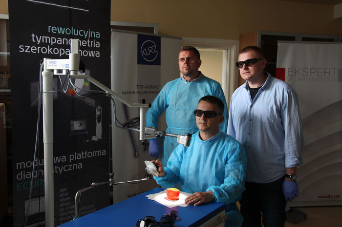 The course was designed for otolaryngologists who wanted to improve the latest methods of ear treatments and surgical techniques used in otolaryngology. It was organised by prof. J. Kuczkowski M.D. Ph.D., T. Przewoźny M.D. Ph. D., W. Sierszeń M.D. Ph. D., D. Tretiakow M.D. Ph.D., W. Brzoznowski M.D. Ph.D., D. Stodulski M.D. Ph.D. and A. Molisz M.D. from the Otolaryngology Clinic, as well as Adam Kosiński M.D. Ph.D. from the Department of Clinical Anatomy and doc. Michał Kaliszan from the Department of Forensic Medicine. As in previous editions of the course, the organisers invited the leading European otosurgeons: prof. Kazimierz Niemczyk M.D. Ph.D., head of the Otolaryngology Clinic in Warsaw and Andrzej Żarowski M.D. Ph.D., head of the Otolaryngology Department of the European Institute for Otorhinolaryngology – Head & Neck Surgery Sint-Augustinus in Antwerp, Belgium. Some of the ear surgeries were carried out by prof. Jerzy Kuczkowski.