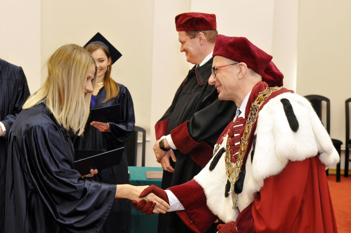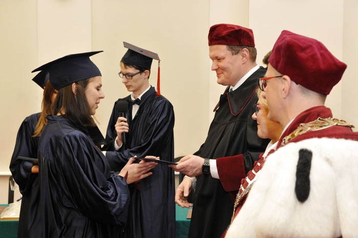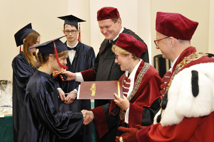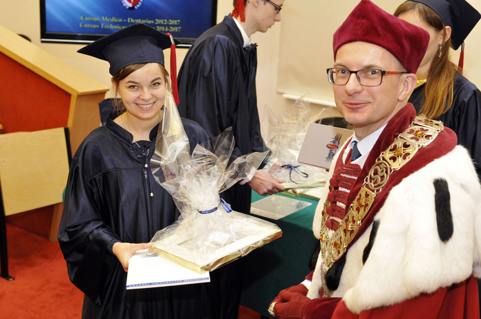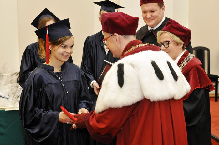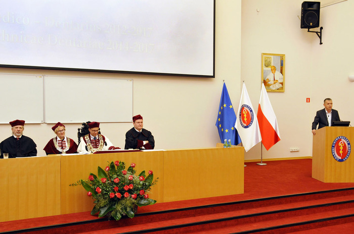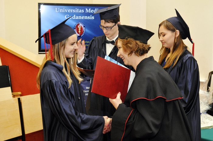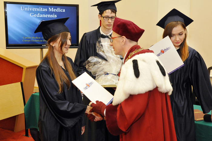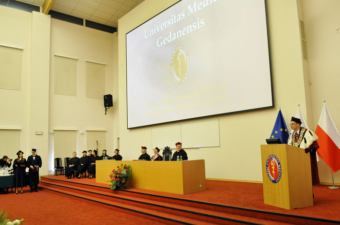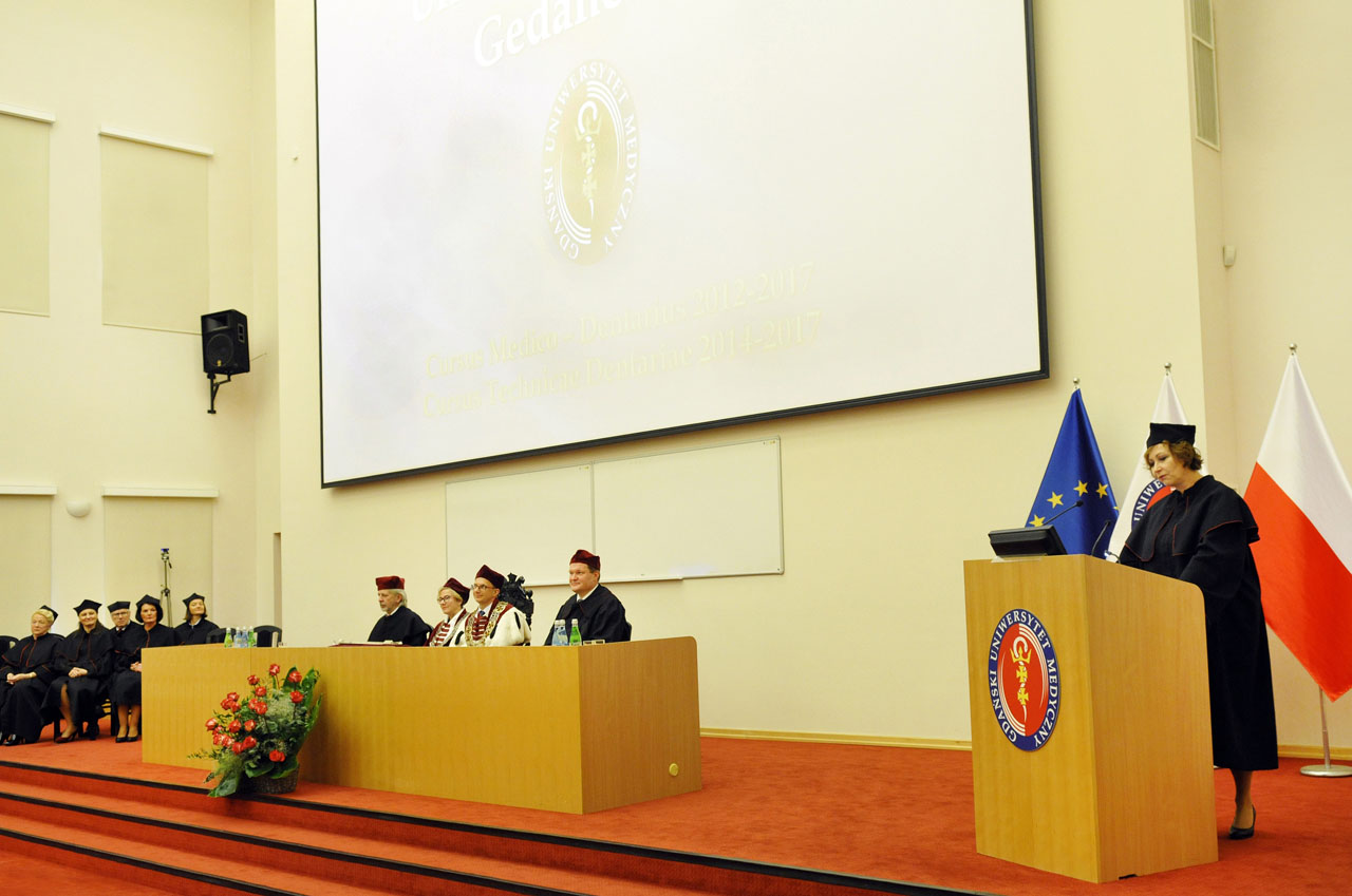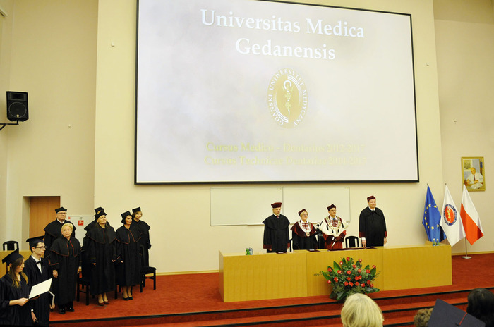 Graduates of the Faculty of Medicine – subfaculty of dentistry (2012-2017) and dental techniques (2014-2017) received their diplomas on Friday, 17th. The ceremony took place at the prof. Narkiewicz Auditorium Primum. In the graduation ceremony participated the MUG’s rector prof. Marcin Gruchała M.D. Ph.D., dean of the Faculty of Medicine prof. Maria Dudziak, M.D. Ph.D., as well as deputy deans: prof. Małgorzata Sokołowska-Wojdyło M.D. Ph.D., prof. Michał Żmijewski M.D. Ph.D. and prof. Bartłomiej Ciesielski Ph.D.