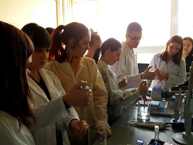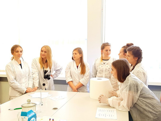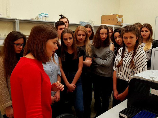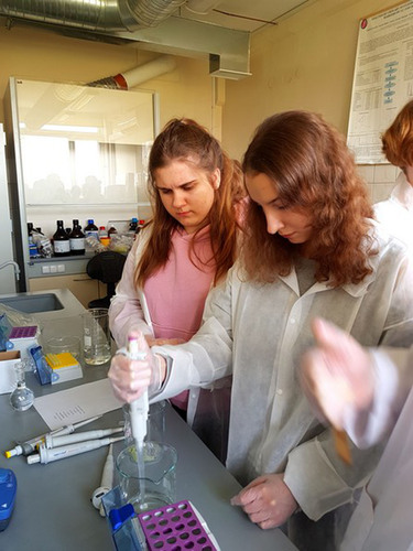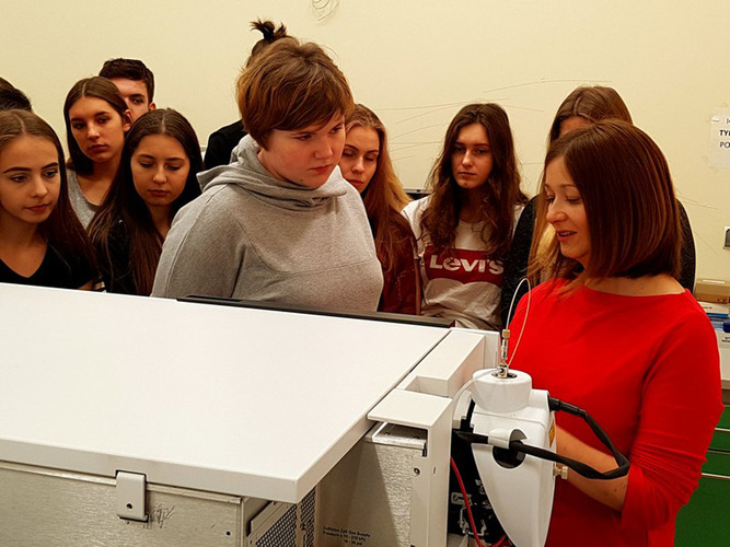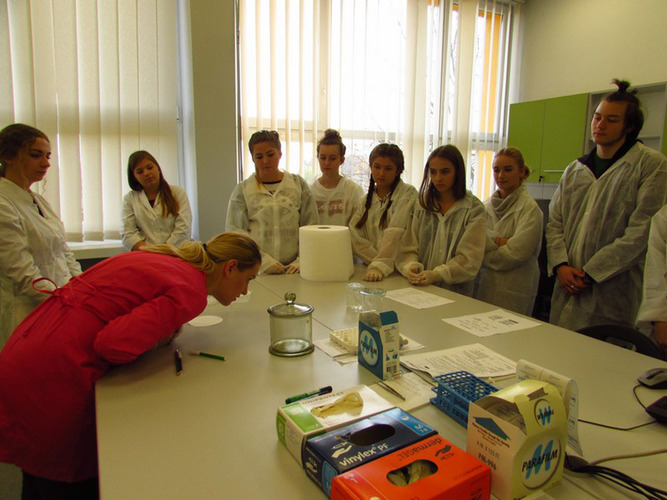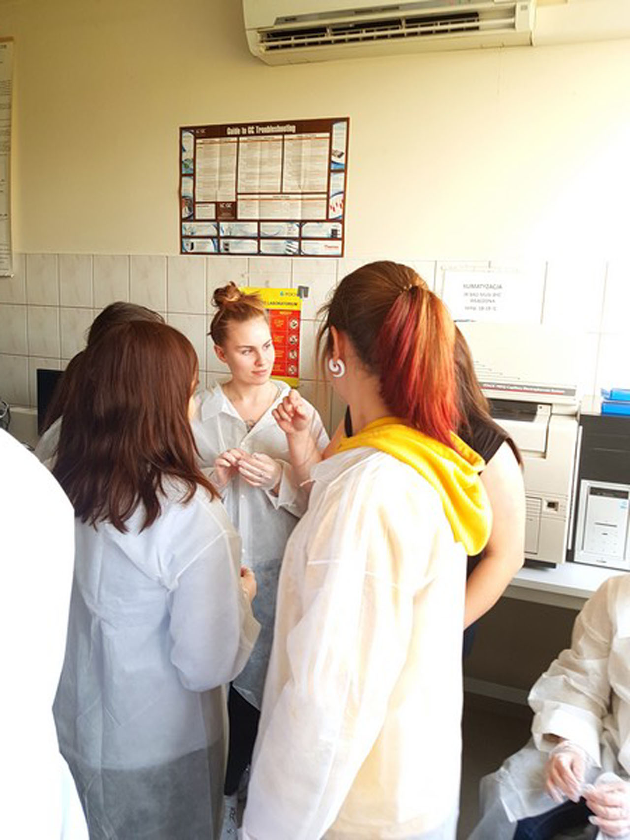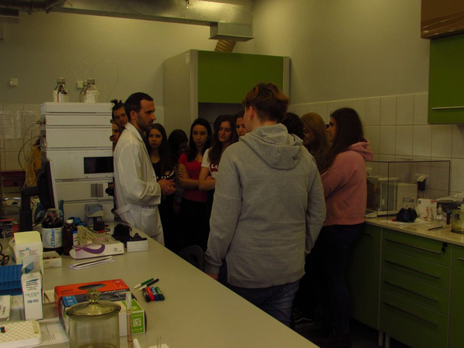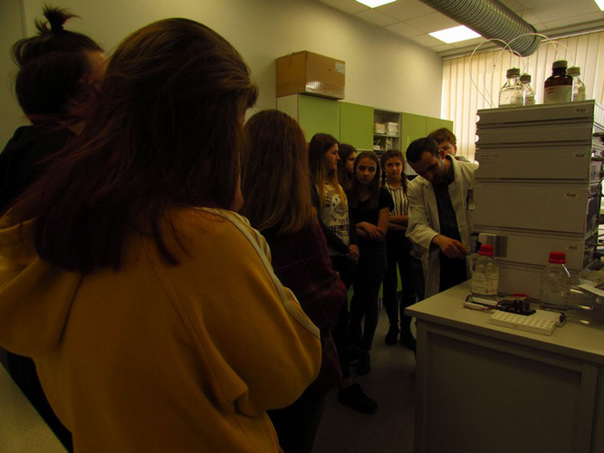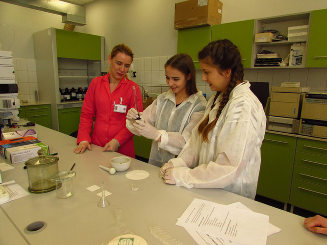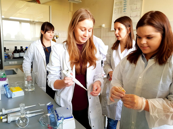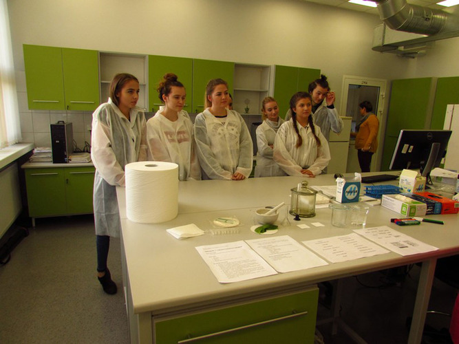 On November 23rd the Department of Biopharmacy and Pharmacodynamics of MUG visited first class students of biological and chemical profile of 1st Secondary School in Rumia. Students had a chance to get familiar with such activities as basics of laboratory work including e.g. extraction of spinach leaf dyes. That was one of many visits of young students at the Faculty of Pharmacy and, as in their opinion – not the last one.
