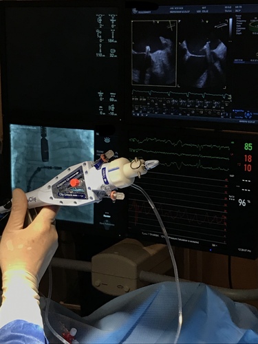 The MitraClip technology imitates Alfieri’s method used in cardiac surgery, which involves joining parts of the anterior and posterior mitral valve flap with a special clasp, resulting in double mitral cavity light. It is possible to perform the procedure using MitraClip technology in the conditions of the cardiology intervention room without the necessity of opening the chest and using the extracorporeal circulation. The procedure is performed by accessing the femoral vein and involves only a small incision of skin around the groin.