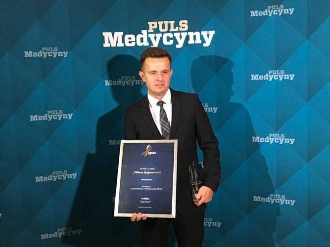 Professor Associate, Miłosz Jaguszewski M.D. Ph.D. from the MUG’s 1st Department of Cardiology, won this year’s edition of the Supertalents in Medicine competition (Polish: Supertalenty w Medycynie). The aim of the competition is to promote leaders of the younger generation of doctors and was organised by the editorial staff of “Puls Medycyny” biweekly magazine. At the final ceremony of the plebiscite which took place in Warsaw were present prof. Edyta Szurowska, the MUG’s Vice-Rector for Clinical Affairs, and prof. Bartosz Karaszewski, Head of the Department of Neurology, who won the 2015 edition. This year’s edition was attended by dozens of doctors and graduates of medical faculties, academic centres, and clinical hospitals across Poland. All the applications were presented to members of the jury who assessed the scientific achievements of the candidates, their involvement in social activities and prospects for further development.