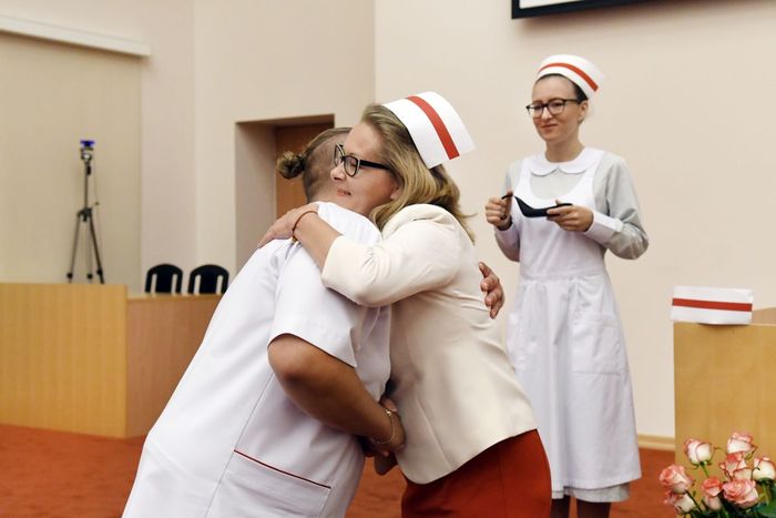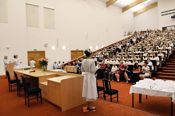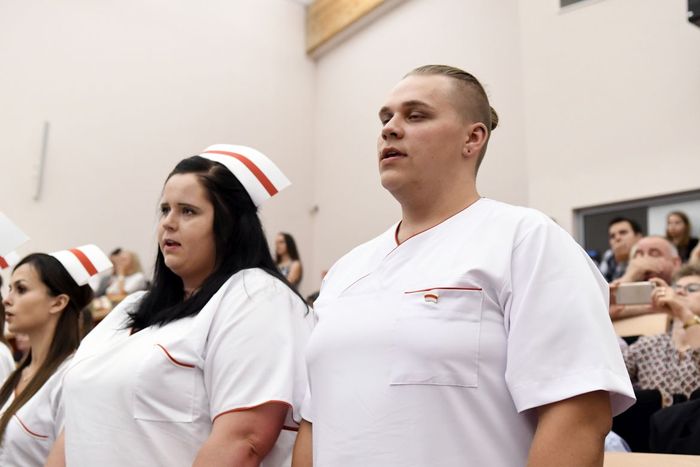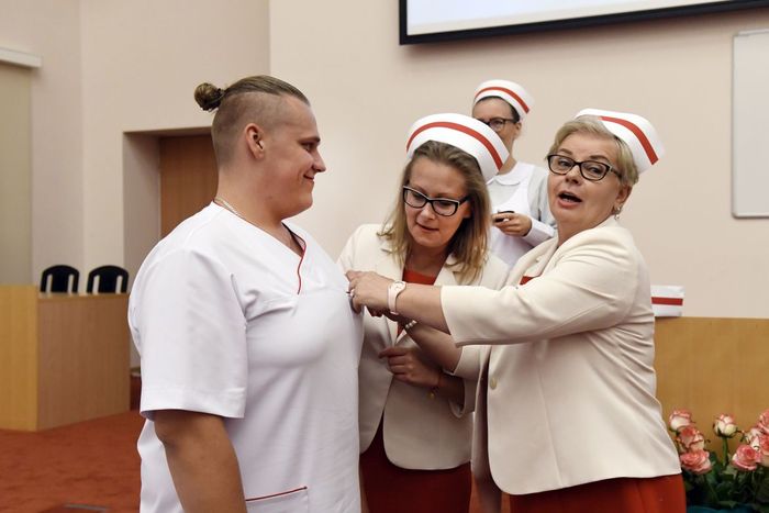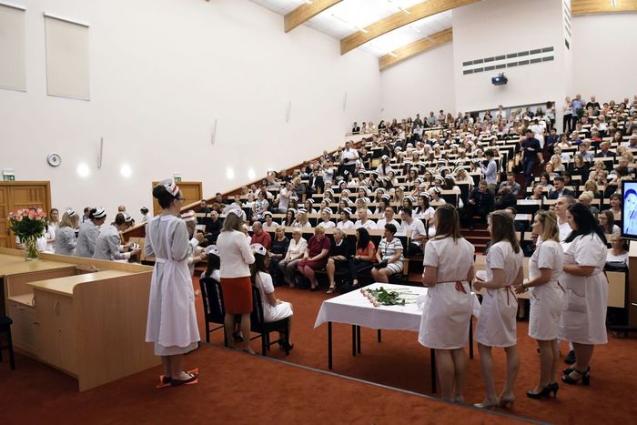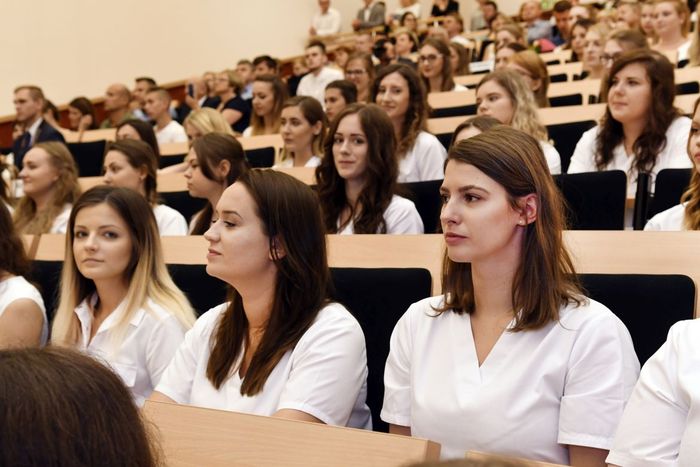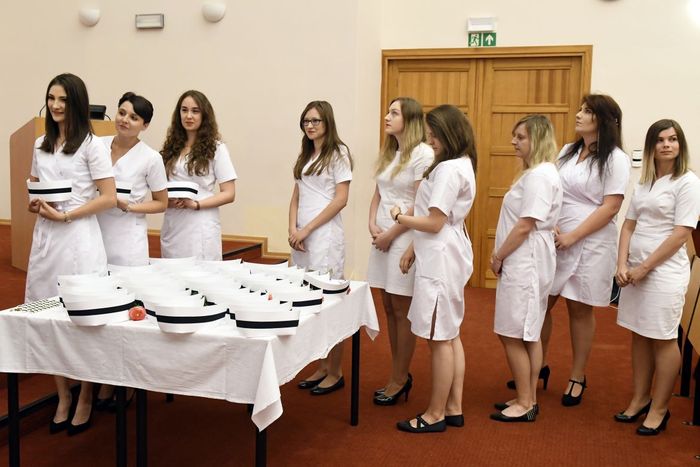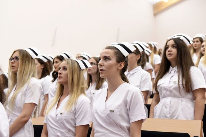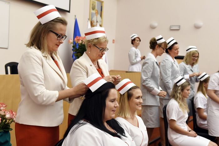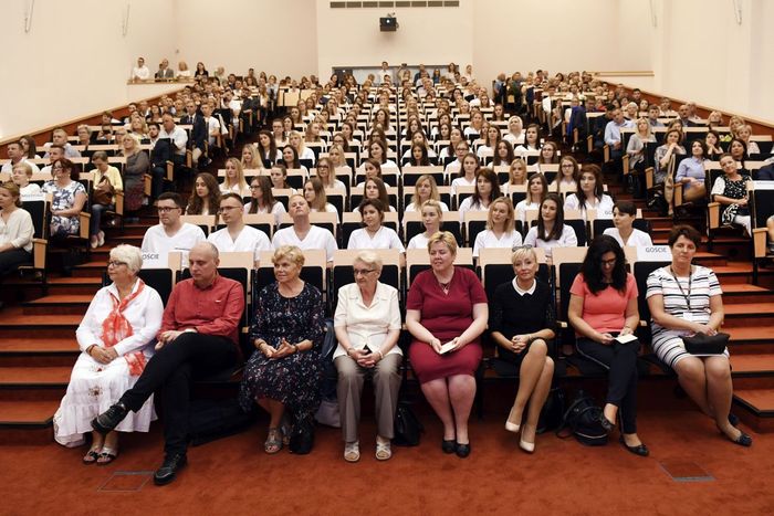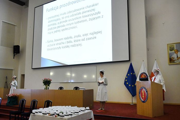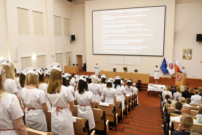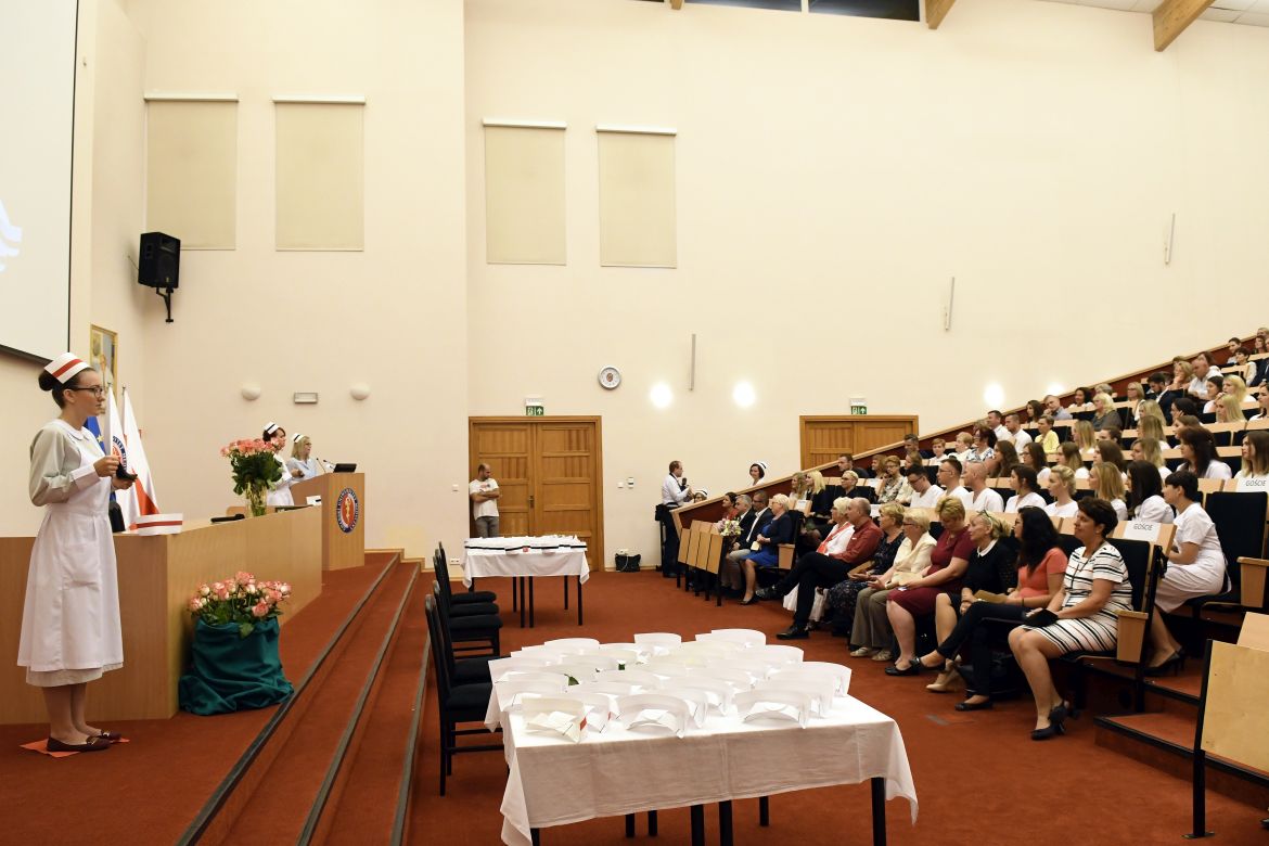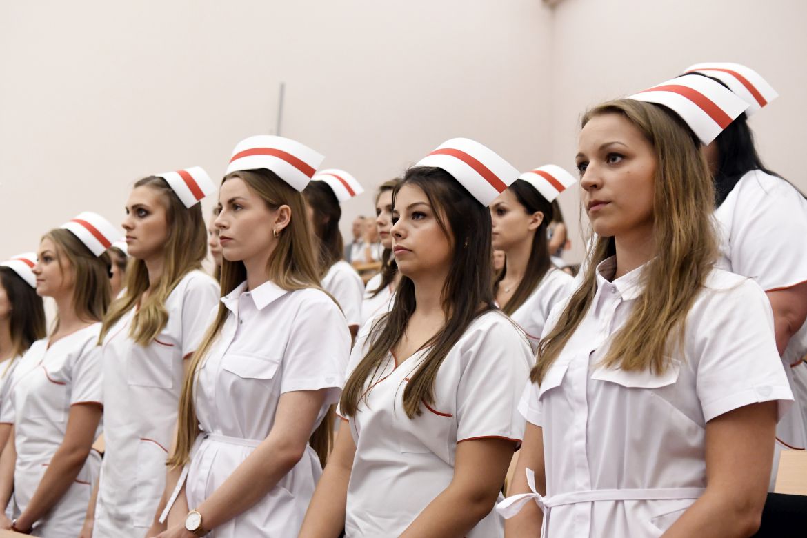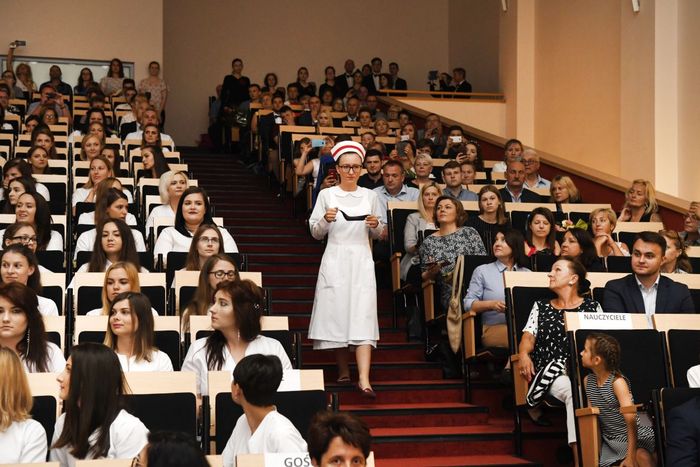 The traditional capping ceremony for the graduates of the nursing and midwife programs of the MUG Faculty of Health Sciences took place on June 14th 2018. The graduates, their families and friends, MUG authorities and staff as well as special guests (representatives of the local nursing and midwife chamber, the authorities and the University Clinical Centre authorities) gathered in the auditorium. Students wearing traditional clothing opened the ceremony by bringing lit candles to the auditorium, symbolizing the life entrusted to the care of nurses and midwifes. The caps worn by the graduates symbolize belonging to their new profession, service to people and obligation to maintain traditions of these beautiful yet difficult professions. The oath repeated by out loud by the graduates is an introduction to the Nurse and Midwife Code of Professional Ethics of the Republic of Poland.