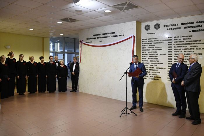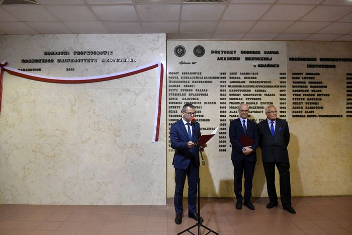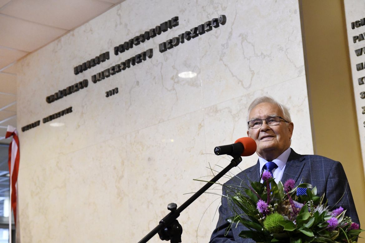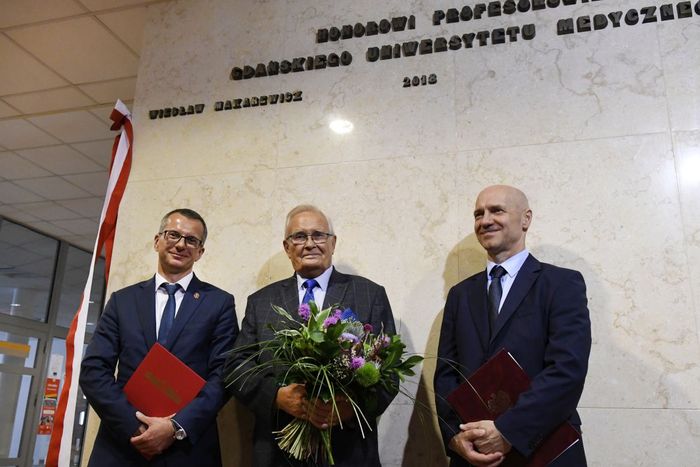Professor Wiesław Makarewicz is the first scientist who has been honored with the title of the Honorary Professor of the Medical University of Gdańsk. The unveiling of the memorial plaque with the Professor’s name took place on June 25, 2018, in Atheneum Gedanense Novum.