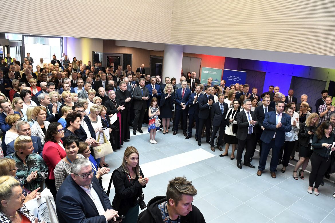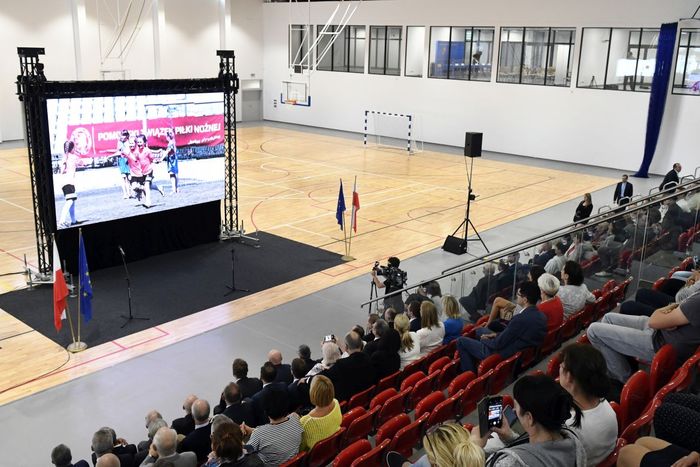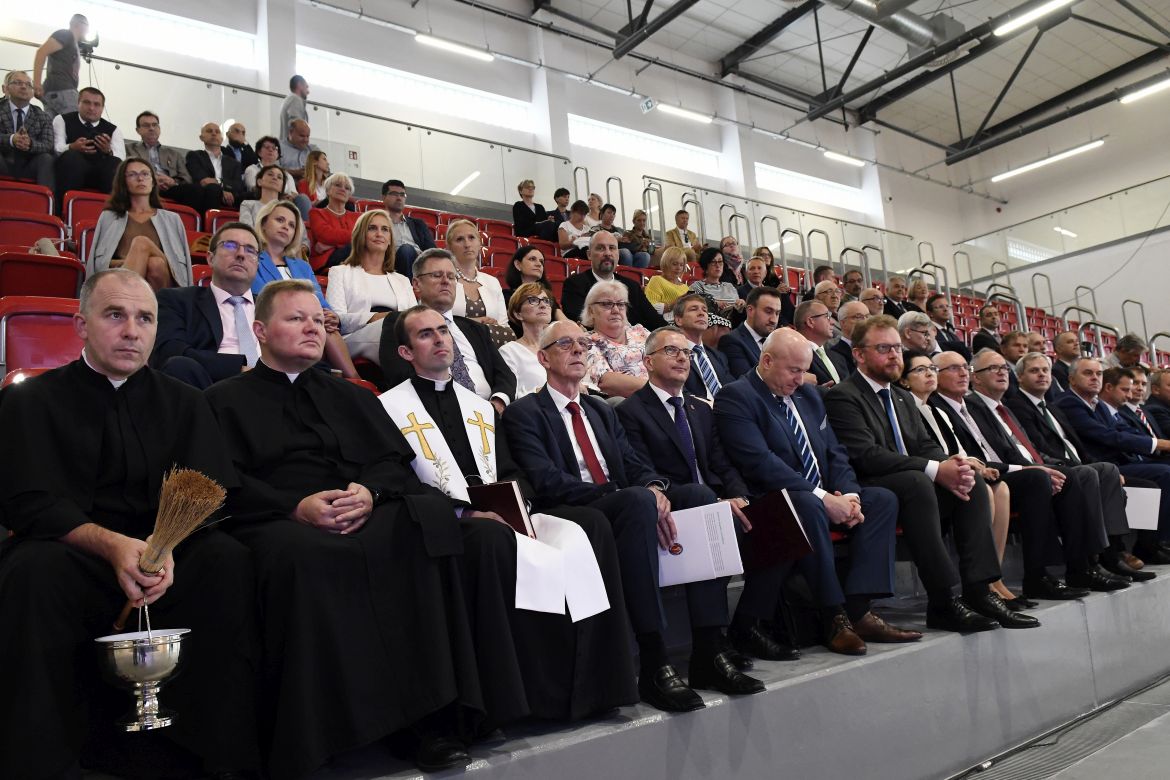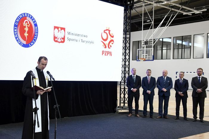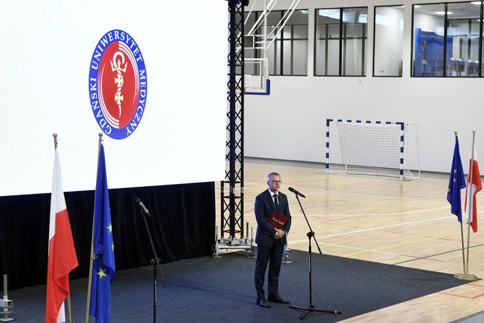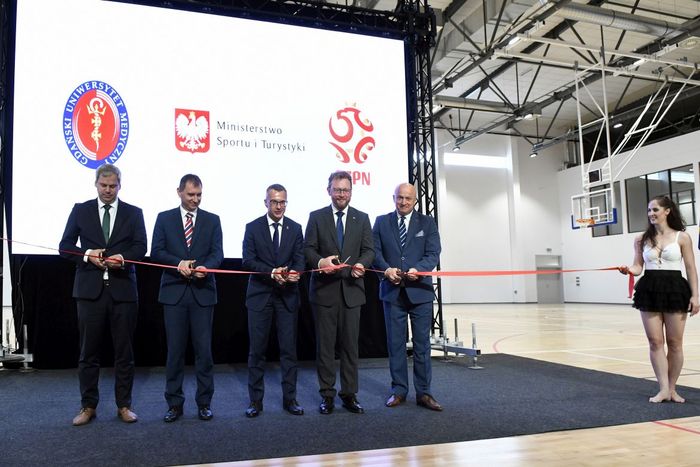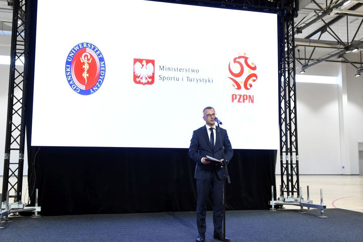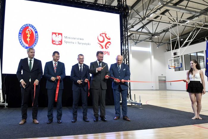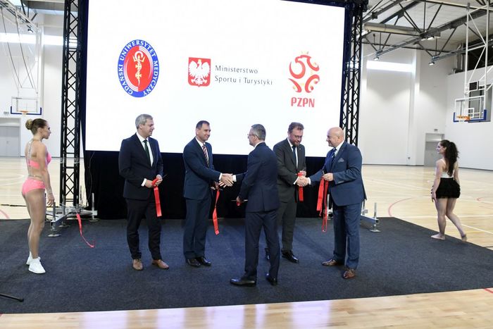 The opening celebration of the largest investment carried out by the Medical University of Gdańsk – the Non-Invasive Medicine Centre (NIMC), is behind us. On the same day, the MUG’s Sports Centre was officially opened, which is the most modern academic sports facility in Pomerania. In the opening ceremony participated representatives of the University and the University Clinical Centre; Minister of Health, Łukasz Szumowski; Deputy Minister of Sport Jarosław Stawiarski, on behalf of the Minister of Science and Higher Education Karol Rabenda and numerous members of the Polish Parliament. The Pomeranian Football Association, the strategic partner of the Sport Centre, was represented by its vice president Maciej Wierzbowski.