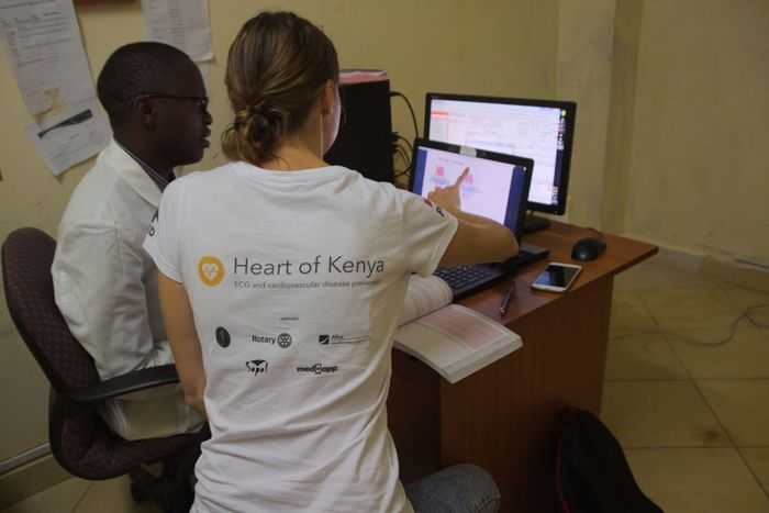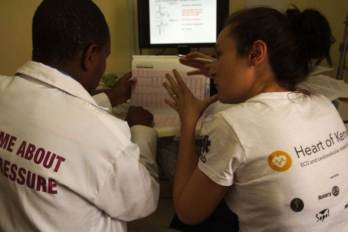 Students of the Medical University of Gdańsk take part in a project “Heart of Kenya”. Students of the fifth and sixth year at the Faculty of Medicine, MUG: Anna Piekarska, Grażyna Zweifler and Antoni Zdrojewski train local medical staff how to use Electrocardiography (ECG).