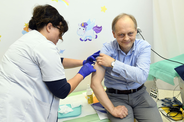 The flu season has just started. Most effective way to avoid illness is vaccinations. They provide not only individual protection, but also so-called population resistance. University authorities are convinced of the effectiveness of vaccines. Rector prof. Marcin Gruchała, M.D., Ph.D. and Vice-Rector for Students’ Affairs Tomasz Smiatacz, M.D. Ph.D., Head of the Department of Infectious Diseases, Deputy Deans of the Faculty of Health Sciences prof. Piotr Lass, M.D., Ph.D., prof. Grzegorz Raczak, M.D., Ph.D., Head of Department of Cardiology&Electrotherapy and dr Krzysztof Chlebus, M.D., Ph.D., from the 1st Department of Cardiology decided to get vaccinated against influenza.