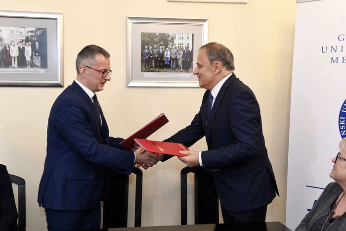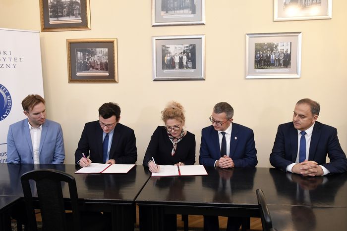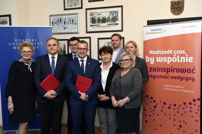 The Medical University of Gdańsk signed a grant agreement with Siemens Healthcare. Meeting took place on December 4. University will receive funds for the implementation of the scientific grant “Identification of blood, neuroimaging and clinical biomarkers for prospective assessment of the risk of intracranial hemorrhage (ICH) after thrombolytic treatment of acute ischemic stroke” which is directed by prof. Bartosz Karaszewski, M.D., Ph.D., head of the Department of Adult Neurology. Agreement was signed by the MUG’s Rector, prof. Marcin Gruchała, M.D., Ph.D., Vice-Rector for Clinical Affairs, prof. Edyta Szurowska, M.D., Ph.D. and Siemens Healthcare representatives: Dariusz Nocek, Daniela Grych, Kamil Gorczewski, Małgorzata Gaik and Marta Waszczyk.