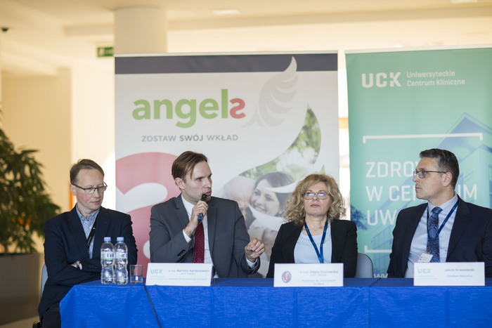 On 22 February 2019 a press conference concerning the pilot programme of mechanical thrombectomy was held at the UCC, with participation of prof. Jerzy Walecki, a National Radiology Consultant, prof. Edyta Szurowska, Jakub Kraszewski, dr Tomasz Stefaniak, director of UCC, prof. Bartosz Karaszewski, head of the Department and Clinic of Adult Neurology MUG, dr Tomasz Gorycki, Coordinator of the Surgical Radiology Laboratory.
