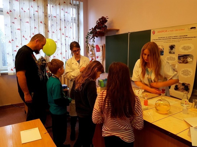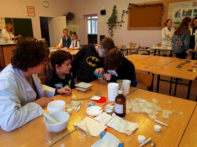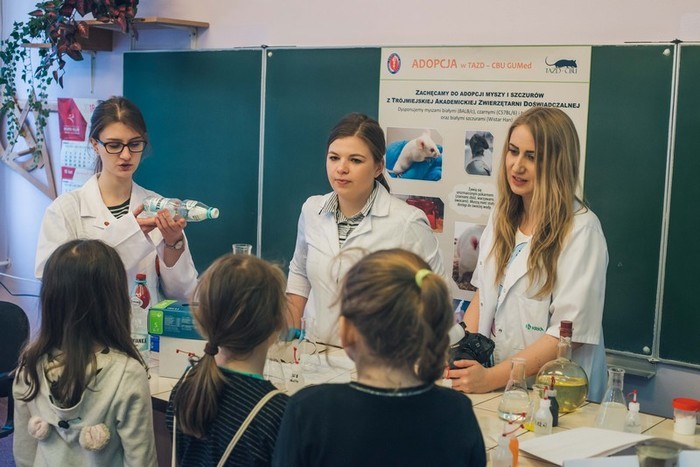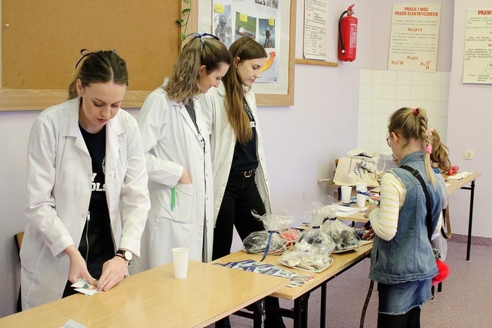 Students of pharmacy took part in the event, which took place on March 9, 2019 in the High School No. 10. Event was attended by students of pharmacy: Karolina Cąkała, Karolina Puchalska and Aleksandra Wicińska from scientific circle at the Department of Bromatology, as well as Ula Kijanko, Klaudia Kurlapska and Jonatan Mroczek from scientific circle at the Department of Biopharmacy and Pharmacodynamics. Public health faculty was represented by Natalia Chrzczonowska. Materials for the event were made available thanks to Department of Pharmacognosy, Department of Applied Pharmacy, Department of Analytical Chemistry. The event was coordinated by Damian Szczesny, Ph.D., from the Tri-City Academic Laboratory Animal Centre – Research and Services Centre. The Science and Play Festival was also an opportunity to collect funds for charity. This year PLN 6370,24 was collected. Money will go to patients of “Hospicjum Pomorze Dzieciom” Foundation.
