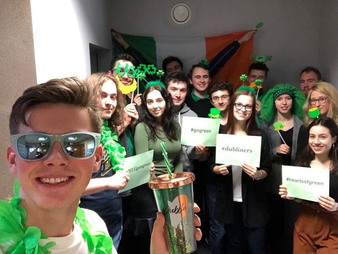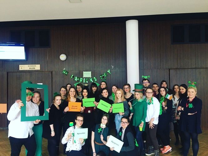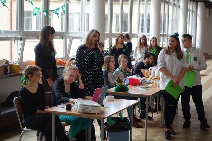 The MUG’s Department of Foreign Languages and first year medical analytics students organised the Irish Day on the 15 March 2019. The coordinator of the project was Magda Warzocha from Department of Foreign Languages. During the event students presented slides about St. Patrick’s Day, Irish traditions and culture. Under the watchful eye of one of our students, Monika Muszak, the gathered had the opportunity to learn a few steps of Irish dance. Of course, there was also Irish music performed: Zuzanna Tarach (guitar and singing), Julia Zaparucha (bass guitar, keyboard and singing) and Magda Wandtke (singing).