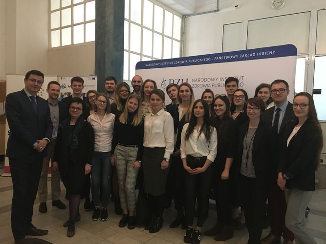 First-year public health students from the MUG together with Łukasz Balwicki, M.D, Ph.D., from the Department of Public Health and Social Medicine took part in the “Vaccinations is our health and safety. Safety of vaccines – testing, control and supervision.” conference. The event took place on April 16 and was a part of the European Immunization Week. The conference was organised by the National Institute of Public Health (NIPH). Students from Gdańsk and Poznań also had the opportunity to meet the director of NIPH Grzegorz Juszczyk and the director Joanna Głażewska from the Department of Public Health in the Ministry of Health. The meeting concerned the main tasks of the Ministry, NIPH as well as careers opportunities for public health graduates.