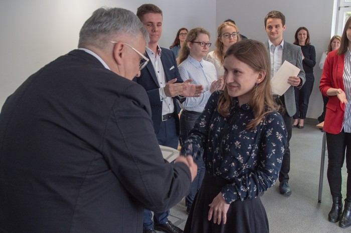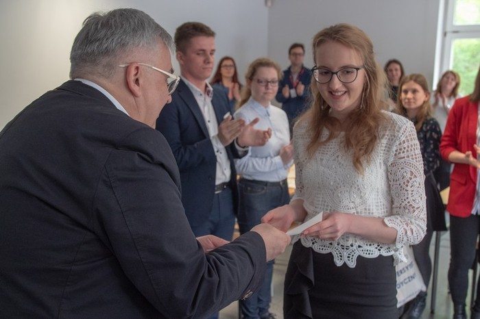 The Department of Foreign Languages of the MUG conducted final of the English Language Competition in Medical Sciences. Event took place on May 11. From among 300 participants from medical universities from all over Poland, 10 finalists were selected who had to give a short presentation on a topic of their choice and answer some additional questions. The first place was taken ex aequo by Tomasz Kozłowski – “Medical simulation” (Adam Mickiewicz University, Poznań) and Klaudia Kałuzińska “Organs on chips – an alternative to animal testing” (Jagiellonian University). The third place went to Damian Wyczyński “Psychopaths and their role in society” (MUG). Competition was organised under the honorary patronage of MUG’s Rector prof. Marcin Gruchała, M.D., Ph.D.