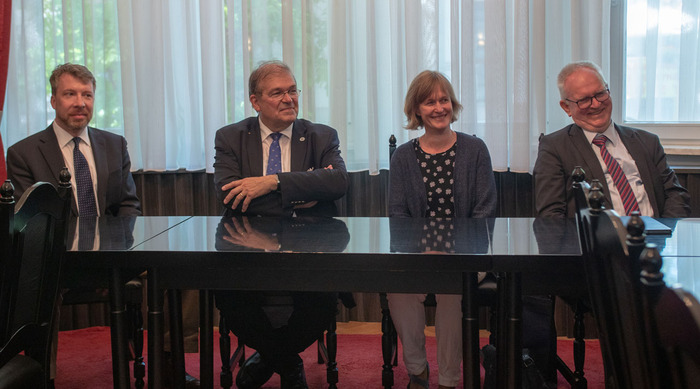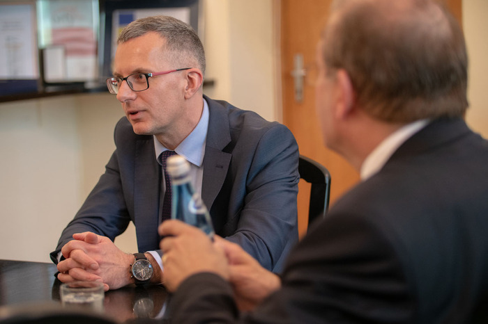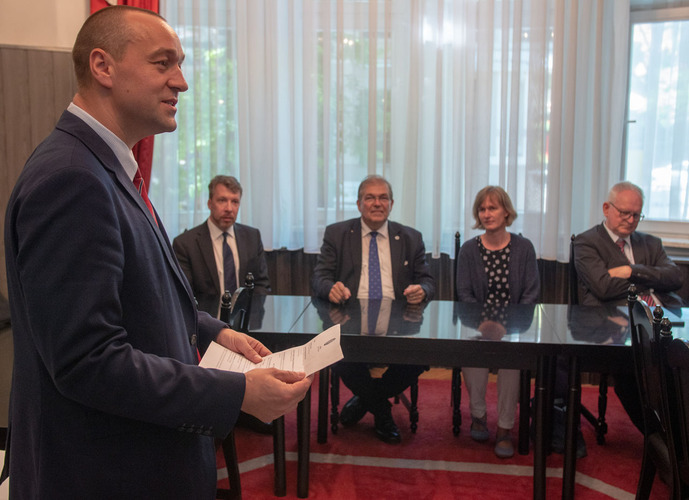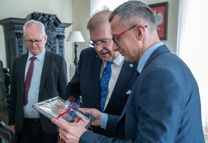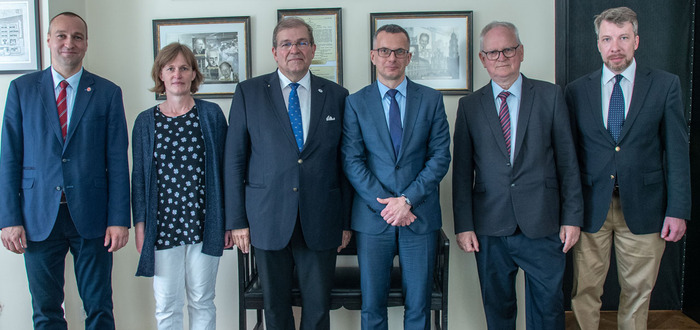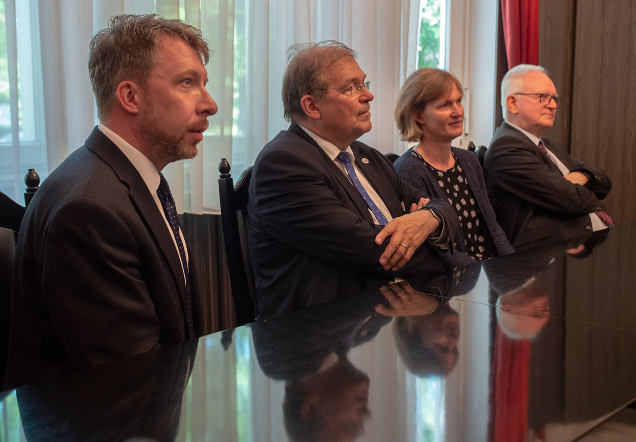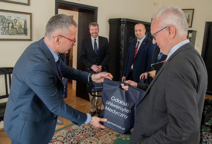 Professor Wolfgang Schareck, rector of Rostock University, prof. Emil C. Reisinger, dean and head of science at Rostock University Medical Centre, prof. Niels Grabow and Wiebke Schlensog from Rostock University Medical Center and prof. Klaus-Peter Schmitz, director of the Institute for Implant Technology and Biomaterials, Warnemünde visited the Medical University of Gdańsk on June 4th. They met with prof. Marcin Gruchała, rector of the MUD and then, in the company of Tomasz Stefaniak, director of health care at UCK, prof. Tomasz Bączek, vice-rector for science and prof. Edyta Szurowska, vice-rector for clinical issues, visited the University Clinical Centre, the MUD hospital.