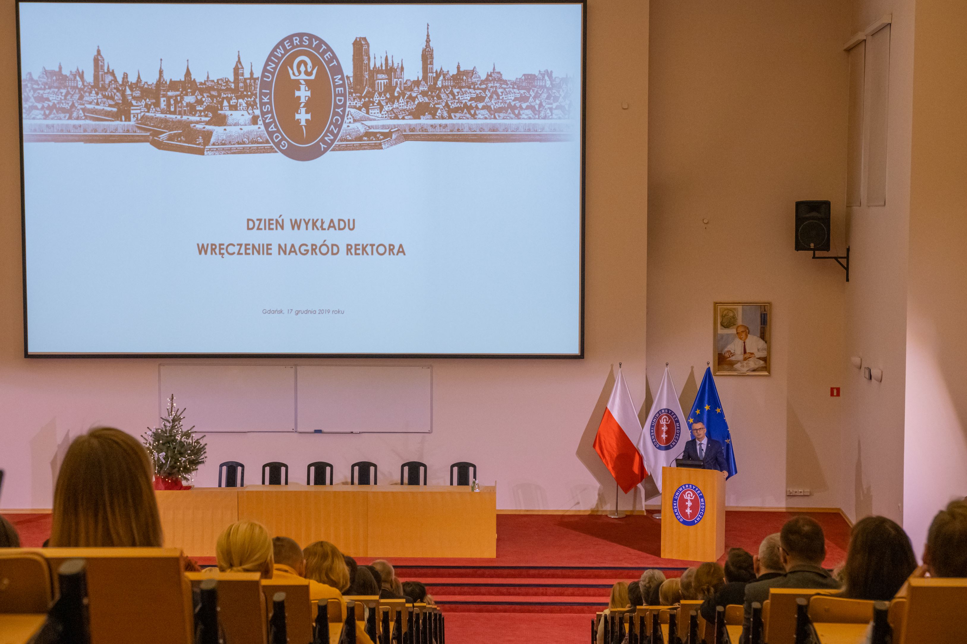 Nucleotides and adenosine: new biomarkers, disease mechanisms, new drugs is the title of the lecture that was given by Prof. Ryszard Tomasz Smoleński, laureate of this year’s Sopot Muse Award of the President of Sopot in the field of science. Professor Smoleński is an outstanding specialist in the field of medical sciences, he conducts research on the mechanisms of heart diseases and new drugs which could be used in cardiology and cardiac surgery. During this special event the Rector’s awards for scientific, didactic and organizational achievements in 2018 was presented. The ceremony took place on December 17 this year in the Auditorium Primum (Atheneum Gedanense Novum building).