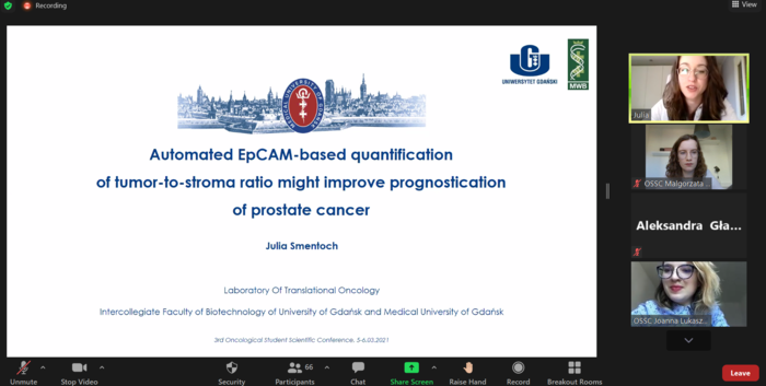 Over 100 participants from Polish and European medical universities, interested in oncology and related fields of medicine attended the 3rd Oncological Student Scientific Conference (OSSC) which was organized online on 5-6th March 2021. The entire conference was held in English.