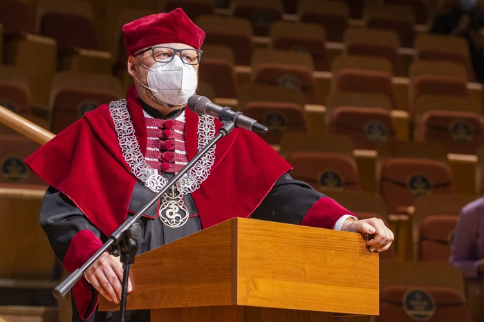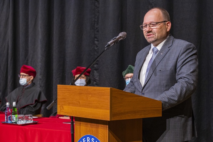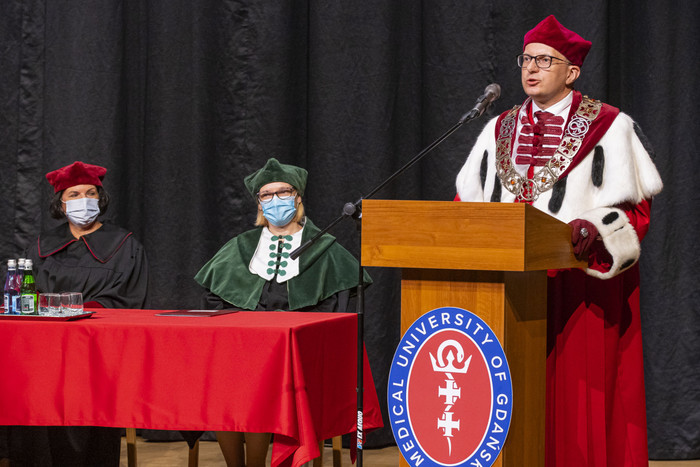 Prof. Marcin Gruchała, Dr. Habil. Kamil Chwojnicki, Prof. Maria Dudziak, Jacek Kaczmarek Ph.D. and Prof. Ewa Bień, as well as Julia Kowalski, graduates’ representative gave occassional speeches.