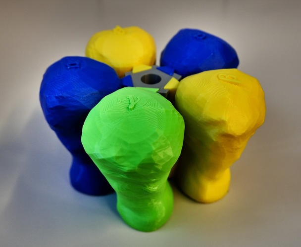 A realistic model of the GABA receptor based on the structure of the proteins that make it up. On the left side you can see support structures removed after the 3D printing process. On the right, a finished model.