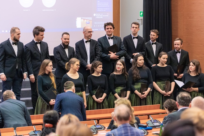 Handing out the medals, Prof. Piotr Stepnowski emphasized the enormous importance of organizing vaccination against COVID-19 and influenza during the difficult time of the pandemic. Students and employees of the University of Gdańsk could register quickly and efficiently, and then get vaccinated in points at the university and at the UCC Centre of Invasive Medicine. The Rector also emphasized the perfect organization of the campaign and the friendly atmosphere in which the vaccinations took place. He especially thanked for the organization and supervision of the smooth course of activities to Sebastian Susmarski, the university vaccination coordinator. The session of the UG Senate and the awarding of medals ended with a concert of Christmas carols performed by the University of Gdańsk Academic Choir.
