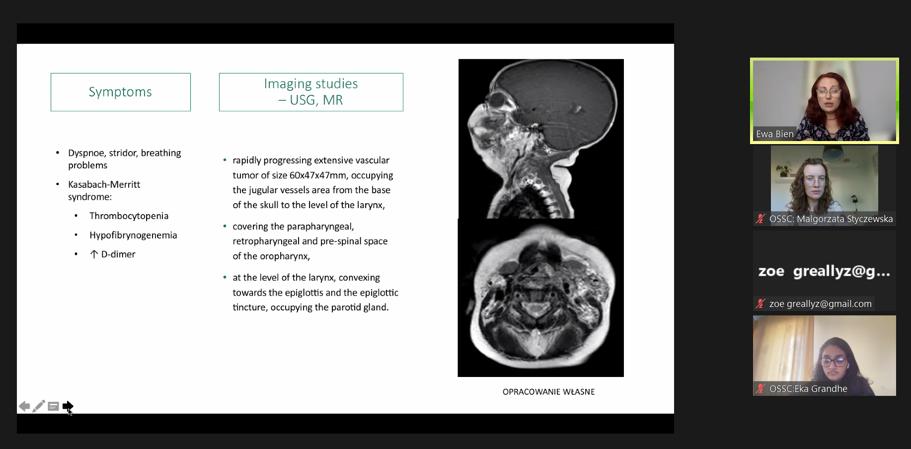 During the second day of the event, 3 sessions of student presentations were held. 15 students presented their works, whose abstracts had been previously selected from among the 33 submitted works. In addition, expert lectures were given by: Prof. Ewa Lewicka from the Division of Cardiology & Electrotherapy (Long-Term Cardiac Follow-up of Cancer Patients: Why so important?) and Prof. Ewa Bień from the Department of Paediatrics, Haemathology & Oncology (Vascular Anomalies in Children – How Can We Help?).