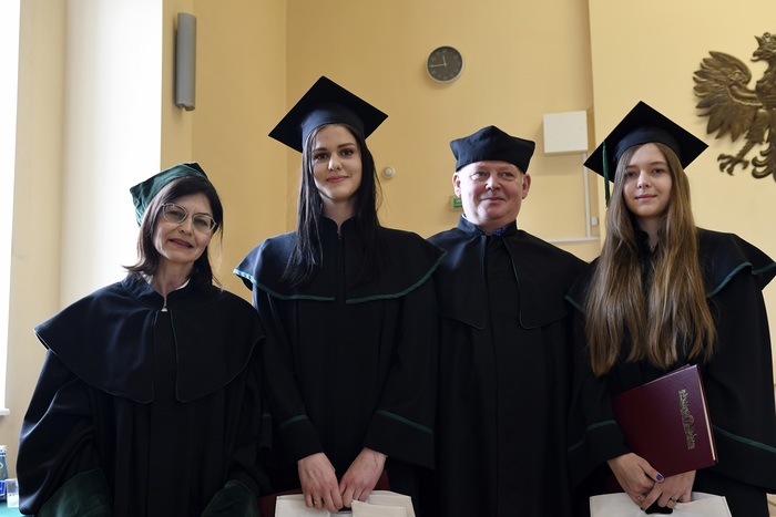 After taking the promise, the graduates received their diplomas from the Rector Prof. Marcin Gruchała and the Dean Prof. Wojciech Kamysz. Outstanding graduates were presented with congratulatory letters and book awards funded by the Gdańsk District Chamber of Pharmacy (Gdańska Okręgowa Izba Aptekarska, GOIA). The following were awarded for the results in science: Klaudia Kołodyńska, MPharm. – winner of the Primus Inter Pares award, Dorota Górniak, MPharm., Ewelina Traczykowska, MPharm., Jagoda Miszewska, MPharm., Natalia Nycz, MPharm. Bartosz Fałkowski, MPharm. was awarded for his activities for the benefit of the academic community. In addition, Jagoda Miszewska, MPharm. received from the Prof. Stanisław Janicki Award from the Dean Prof. Wojciech Kamysz and the President of GOIA, Michał Pietrzykowski, MPharm.