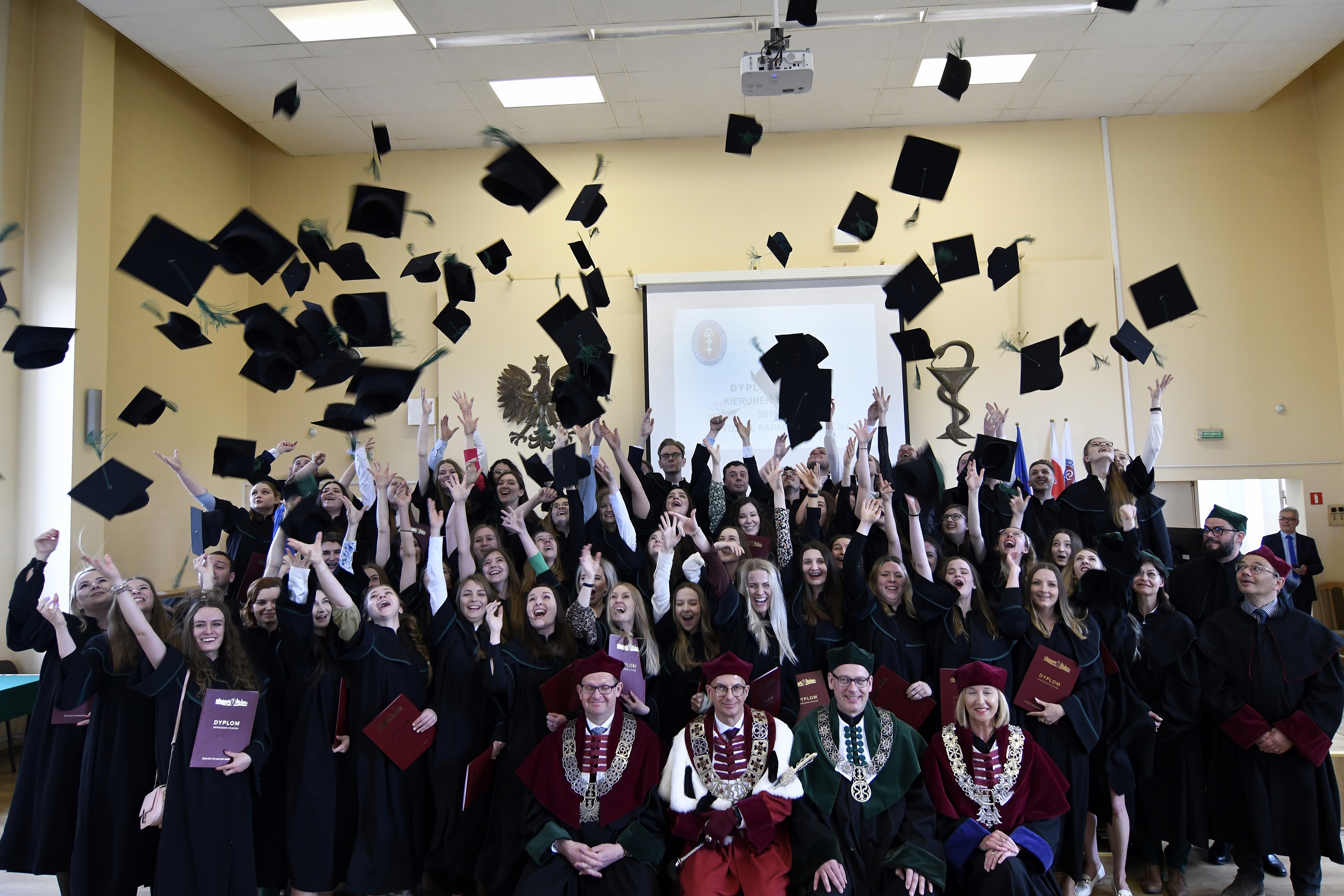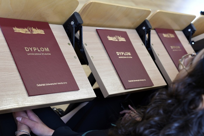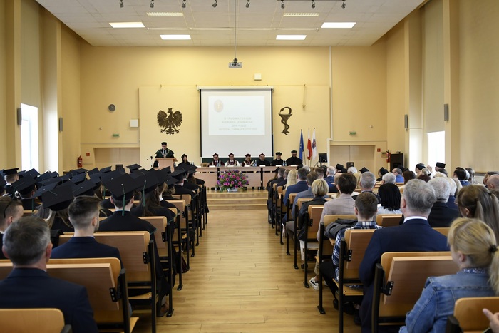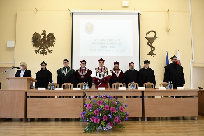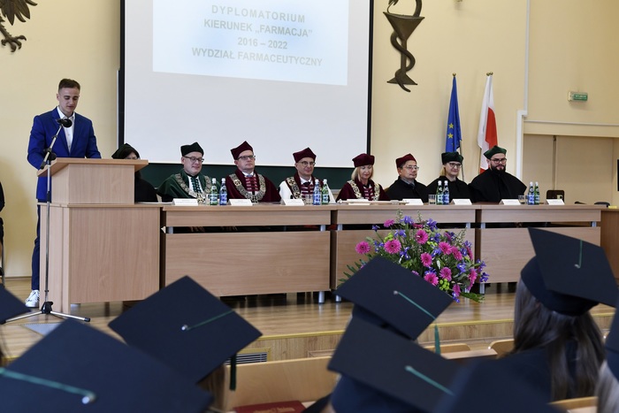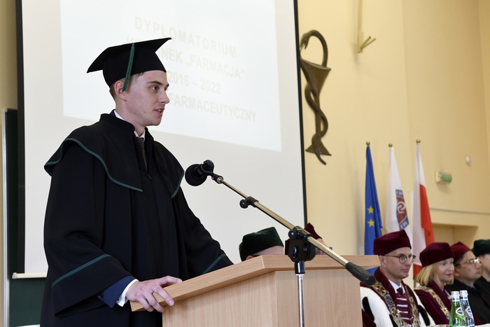 Eighty-four graduates of Pharmacy from 2016-2022 received their diplomas. The event was held on May 13, 2022 at the Auditorium Maximum of the Faculty of Pharmacy. During the ceremony chaired by the dean of the Faculty of Pharmacy Prof. Wojciech Kamysz, attended by: Rector of the MUG Prof. Marcin Gruchała, Vice-Rector for Science Prof. Michał Markuszewski, Vice-Rector for the Quality of Teaching Dr. Habil. Agnieszka Zimmermann, Pharm.D., Assoc. Prof., Deputy Dean of the Faculty of Medicine Prof. Paweł Zagożdżon, Deputy Deans of the Faculty of Pharmacy: Dr. Habil. Magdalena Prokopowicz, Assoc. Prof., Dr. Habil. Danuta Siluk, Assoc. Prof., Dr. Habil. Bartosz Wielgomas, Assoc. Prof., members of the Council of the Faculty of Pharmacy, members of the Employers’ Council (Rada Pracodawców), invited guests and the families of graduates. The ceremony was hosted by Joanna Śliwińska, Ph.D., the University’s Spokesman.