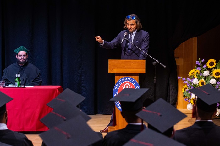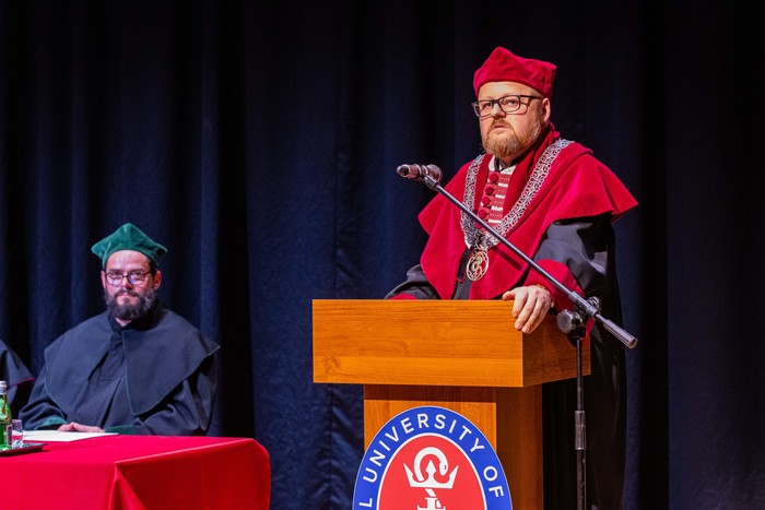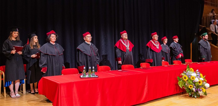 After taking the oath, the graduates received their diplomas from the Vice-Rector Prof. Jacek Bigda, and the Dean Prof. Radosław Owczuk. Outstanding graduates were presented with congratulatory letters and awards.
