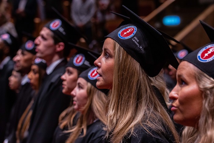 Then the invited guests took the floor: Jacek Kaczmarek, Ph.D. – representative of MUG Alumni Association and Janusz Springer, M.D. from the Division of Preventive Medicine & Education. Prof. Ewa Król from the Department of Nephrology, Transplantology and Internal Diseases also was the guest invited by alumni. At the end of the ceremony, Lana Ahmed, M.D. spoke on behalf of the graduates. The event ended with a joint commemorative photo.